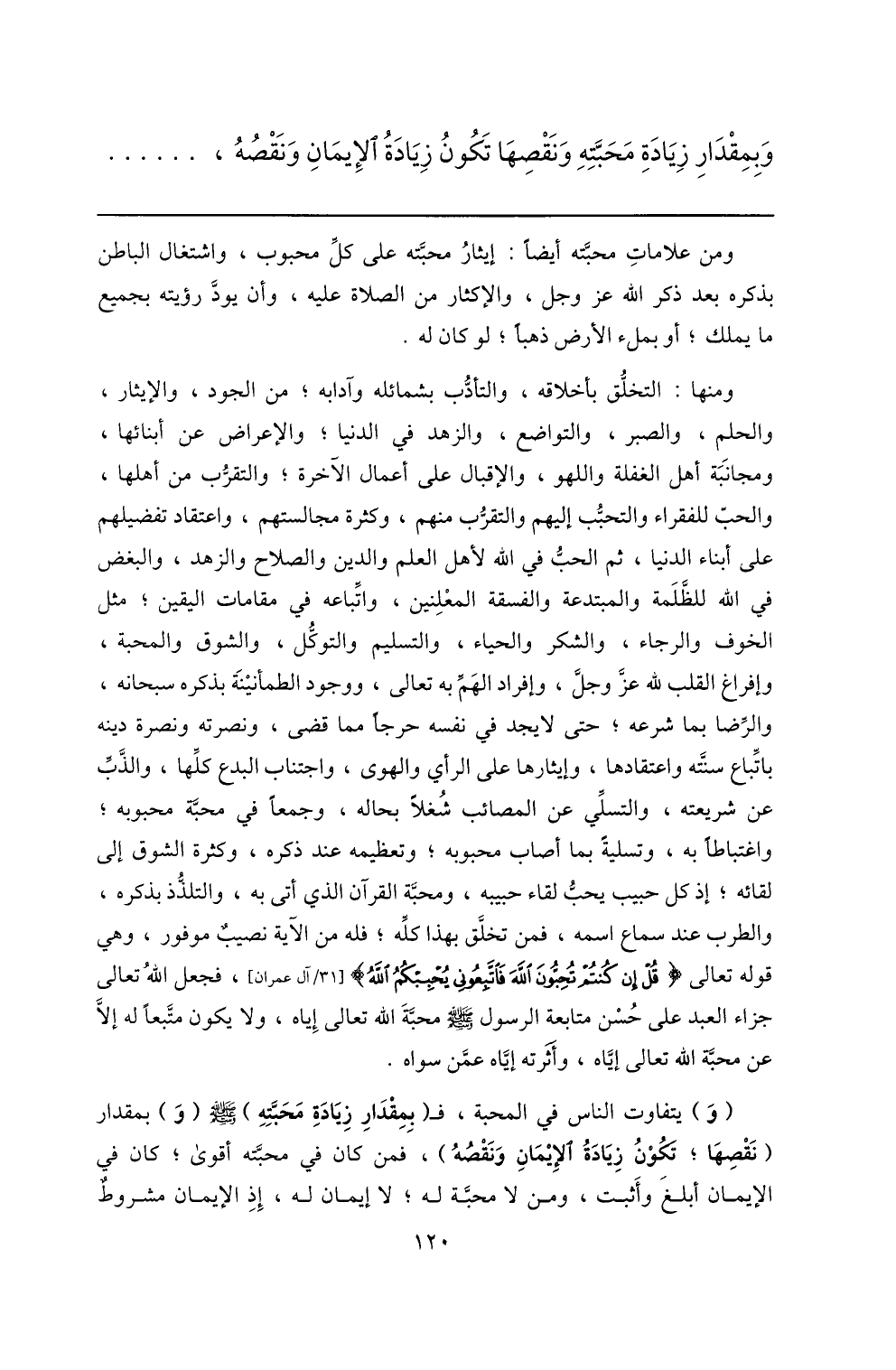 وبمقدار زيادة محبّته ونقصها تكون زيادة الإيمان ونقصه، ...