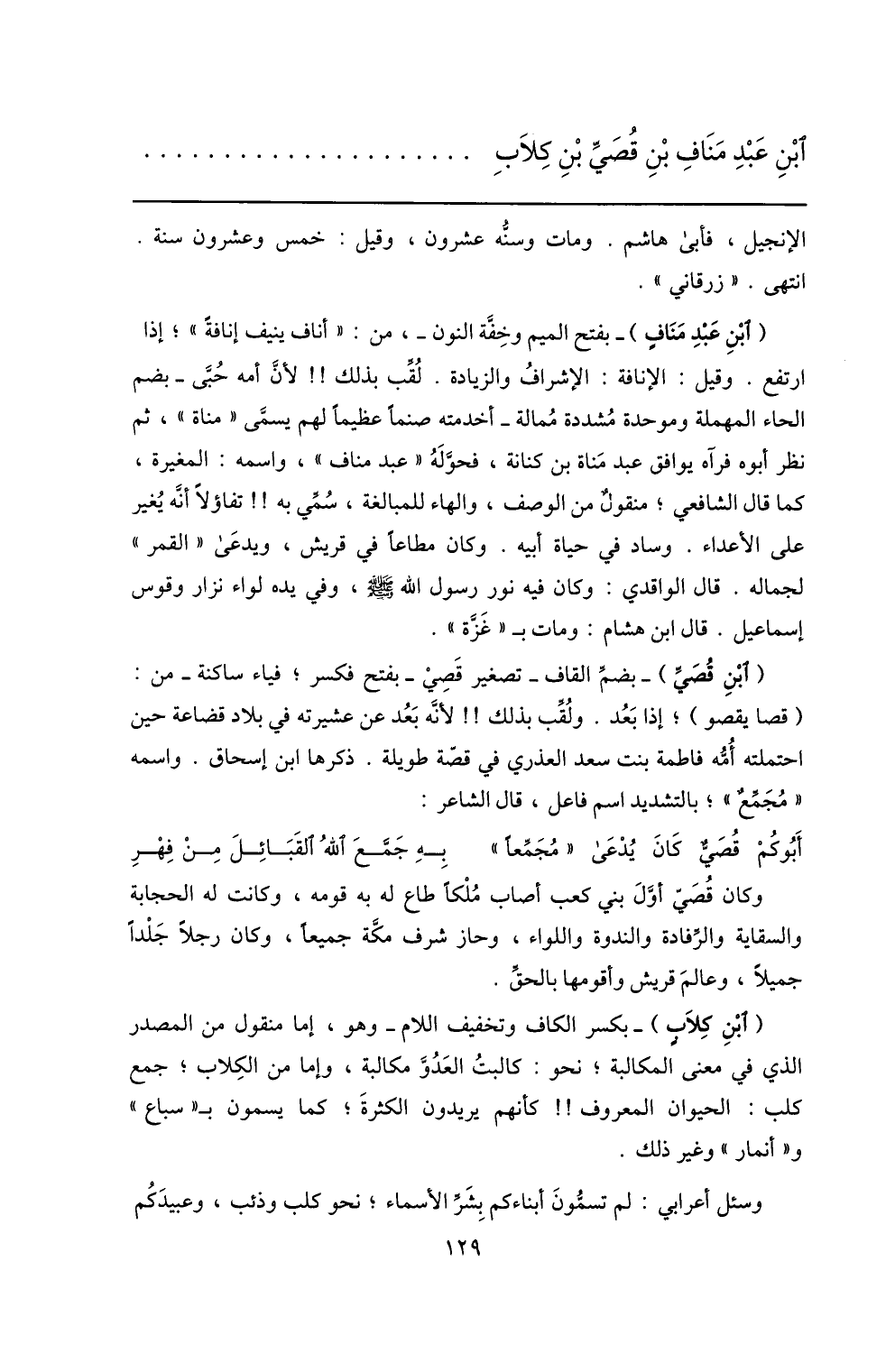 ابن عبد مناف بن قصيّ بن كلاب ...