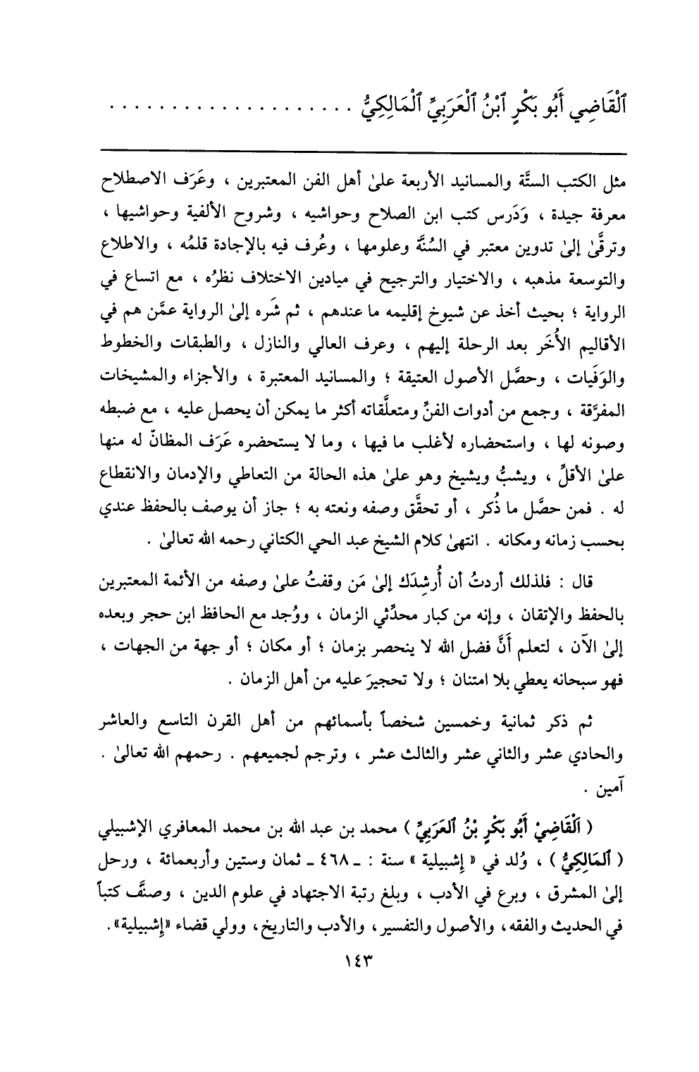 القاضي أبو بكر ابن العربيّ المالكيّ ...