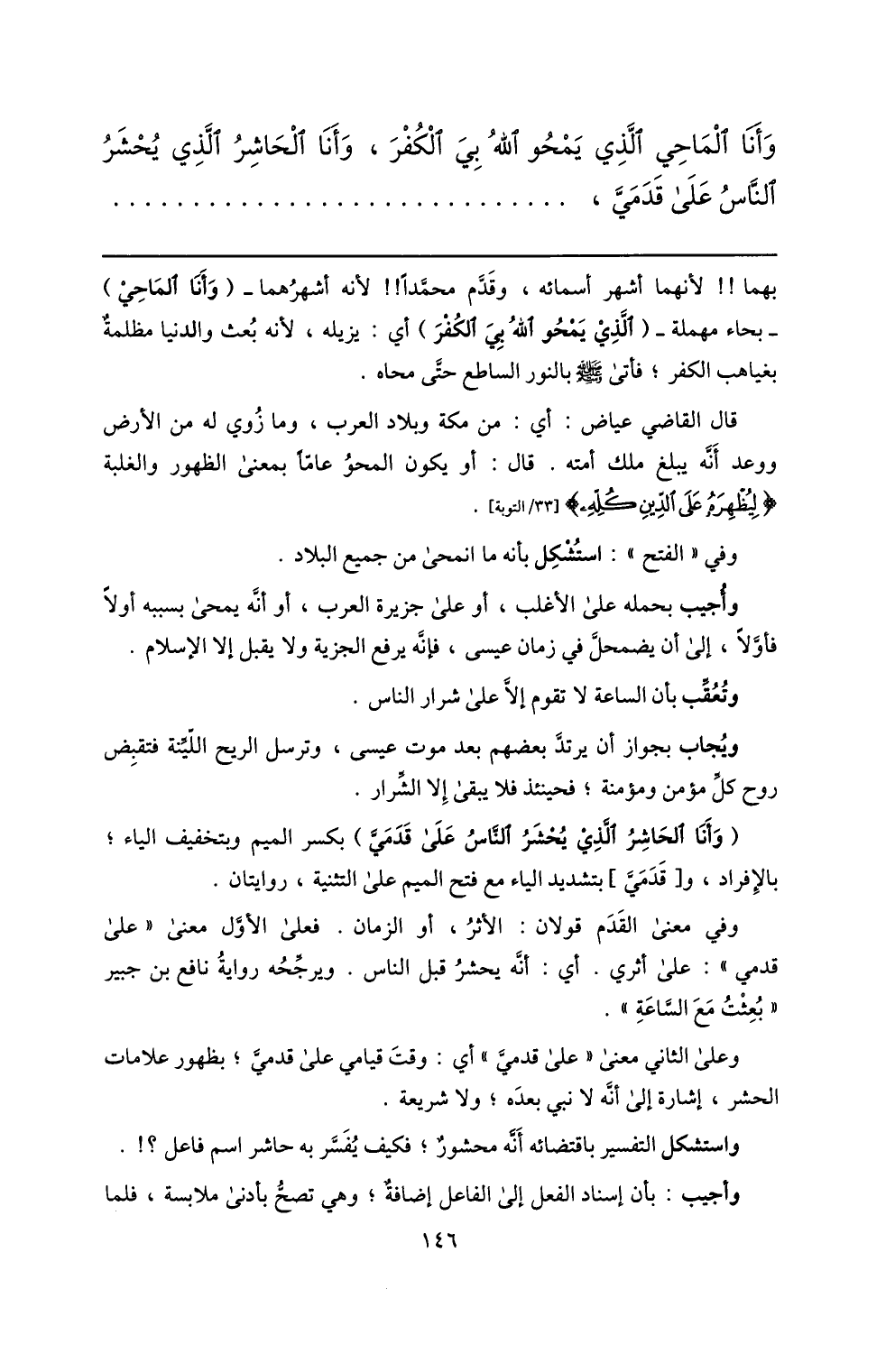 وأنا الماحي الّذي يمحو الله بي الكفر، وأنا الحاشر الّذي يحشر النّاس على قدميّ، ...