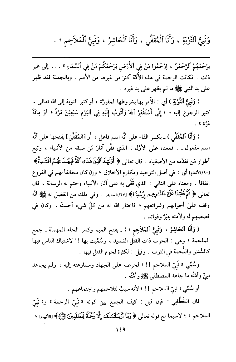 ونبيّ التّوبة، وأنا المقفّي، وأنا الحاشر، ونبيّ الملاحم» .