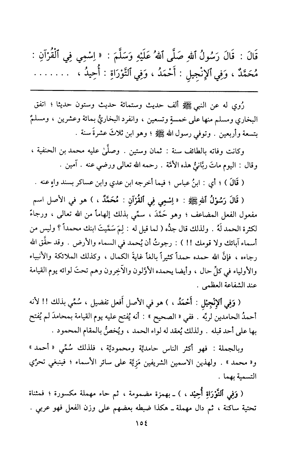 محمّد، وفي الإنجيل: أحمد، وفي التّوراة: أحيد، ...