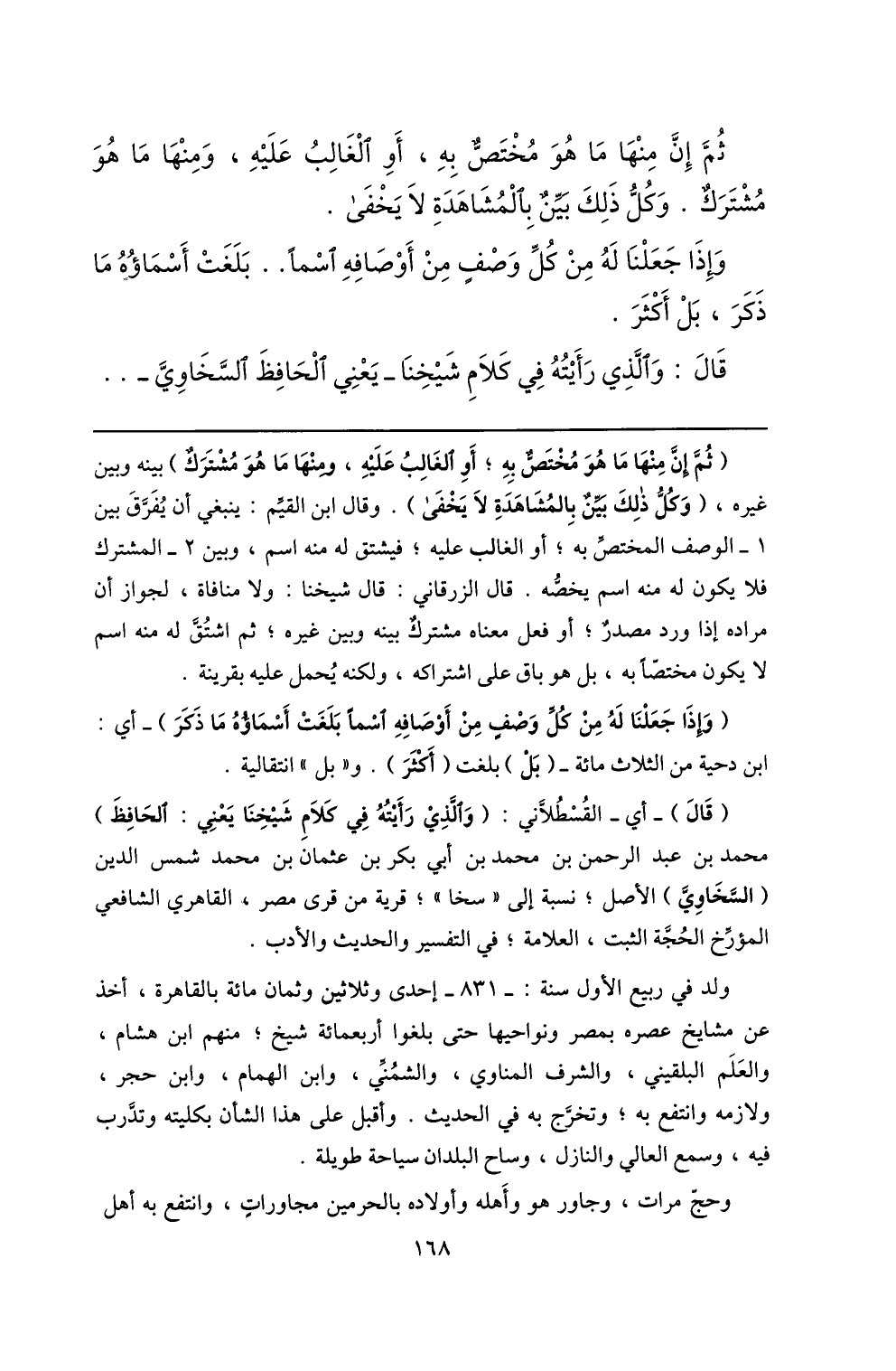 (قال) - أي- القسطلّاني: (والّذي رأيته في كلام شيخنا يعني: الحافظ) محمد بن عبد الرحمن بن محمد بن أبي بكر بن عثمان بن محمد شمس الدين (السّخاويّ) الأصل؛ نسبة إلى «سخا» ؛ قرية من قرى مصر، القاهري الشافعي المؤرّخ الحجّة الثبت، العلامة؛ في التفسير والحديث والأدب.
