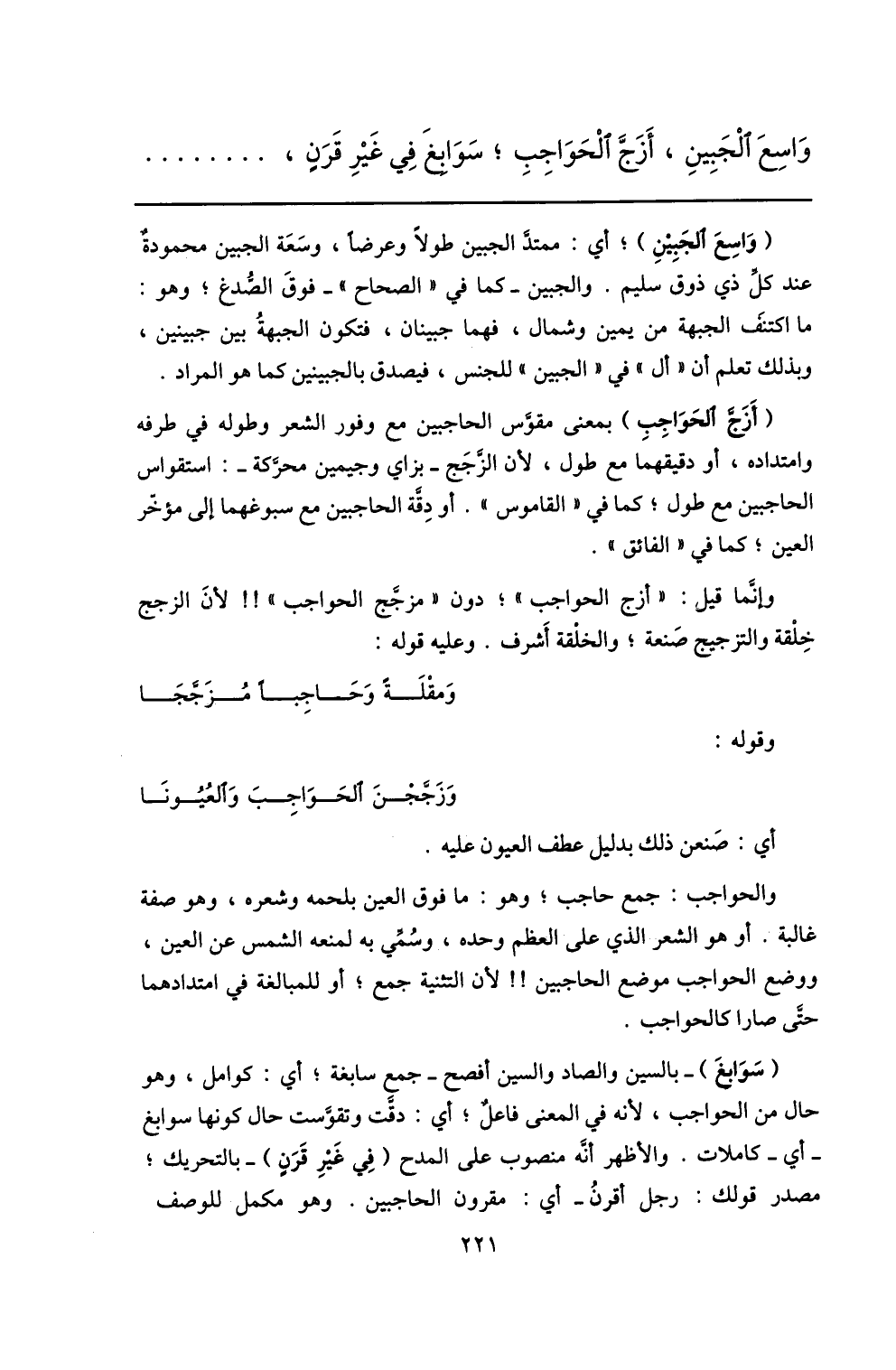 واسع الجبين، أزجّ الحواجب؛ سوابغ في غير قرن، ...