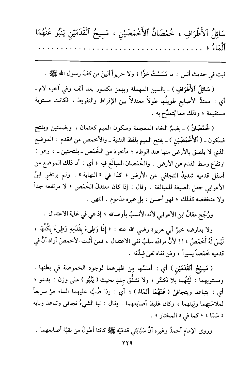 سائل الأطراف، خمصان الأخمصين، مسيح القدمين ينبو عنهما الماء؛ ...