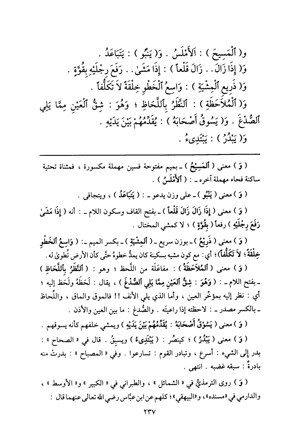 (و) معنى (المسيح) - بميم مفتوحة فسين مهملة مكسورة، فمثناة تحتية ساكنة فحاء مهملة آخره-: (الأملس) .