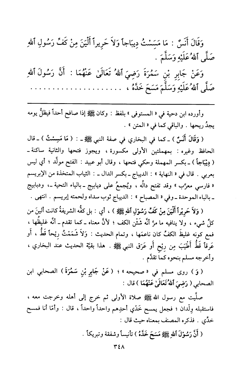 وعن جابر بن سمرة رضي الله تعالى عنهما: أنّ رسول الله صلّى الله عليه وسلّم مسح خدّه، ...