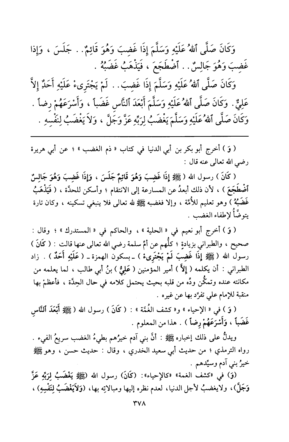 وكان صلّى الله عليه وسلّم إذا غضب.. لم يجترىء عليه أحد إلّا عليّ. وكان صلّى الله عليه وسلّم أبعد النّاس غضبا، وأسرعهم رضا.