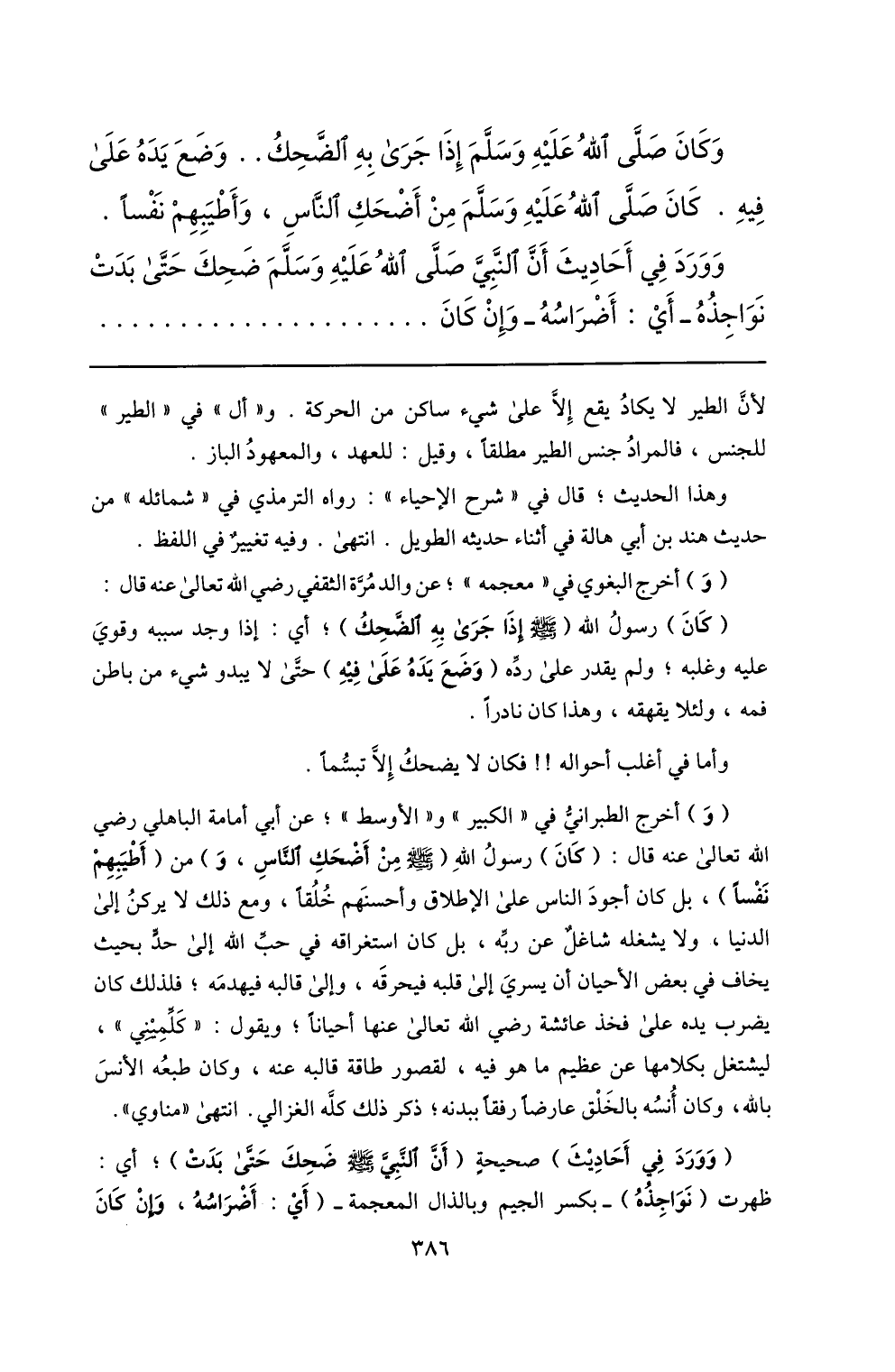وكان صلّى الله عليه وسلّم إذا جرى به الضّحك.. وضع يده على فيه. كان صلّى الله عليه وسلّم من أضحك النّاس، وأطيبهم نفسا.