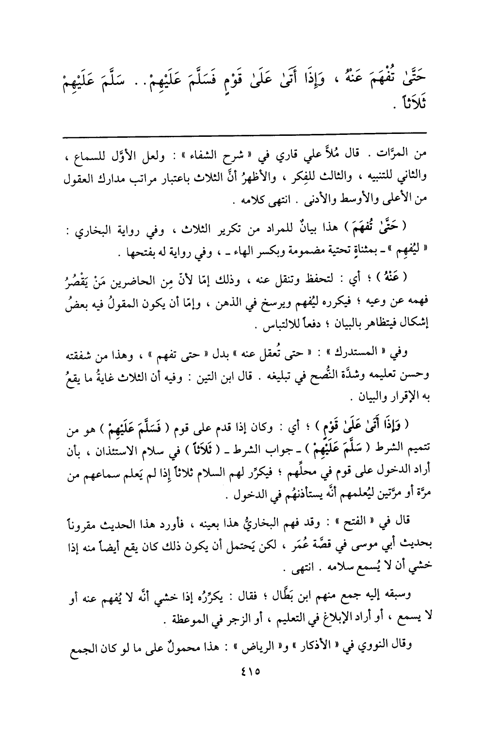 حتّى تفهم عنه، وإذا أتى على قوم فسلّم عليهم.. سلّم عليهم ثلاثا.