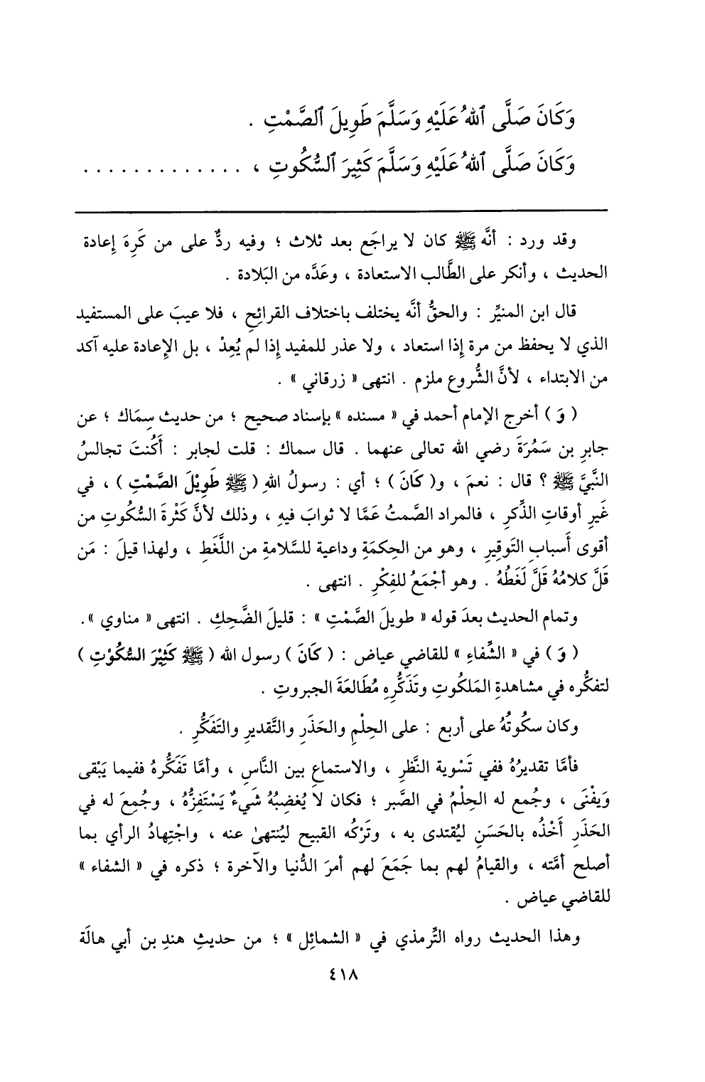 وكان صلّى الله عليه وسلّم كثير السّكوت، ...