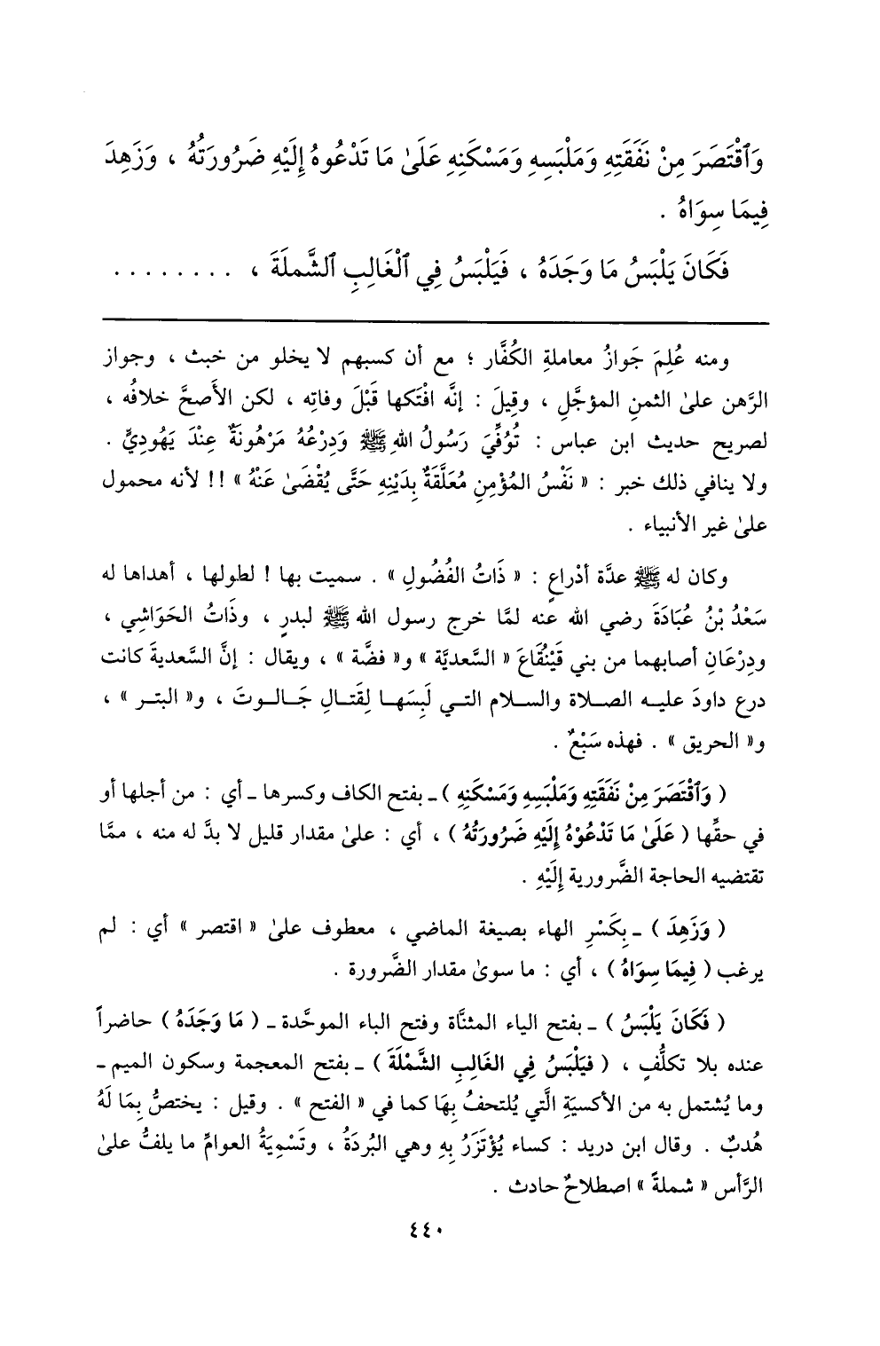 فكان يلبس ما وجده، فيلبس في الغالب الشّملة، ...