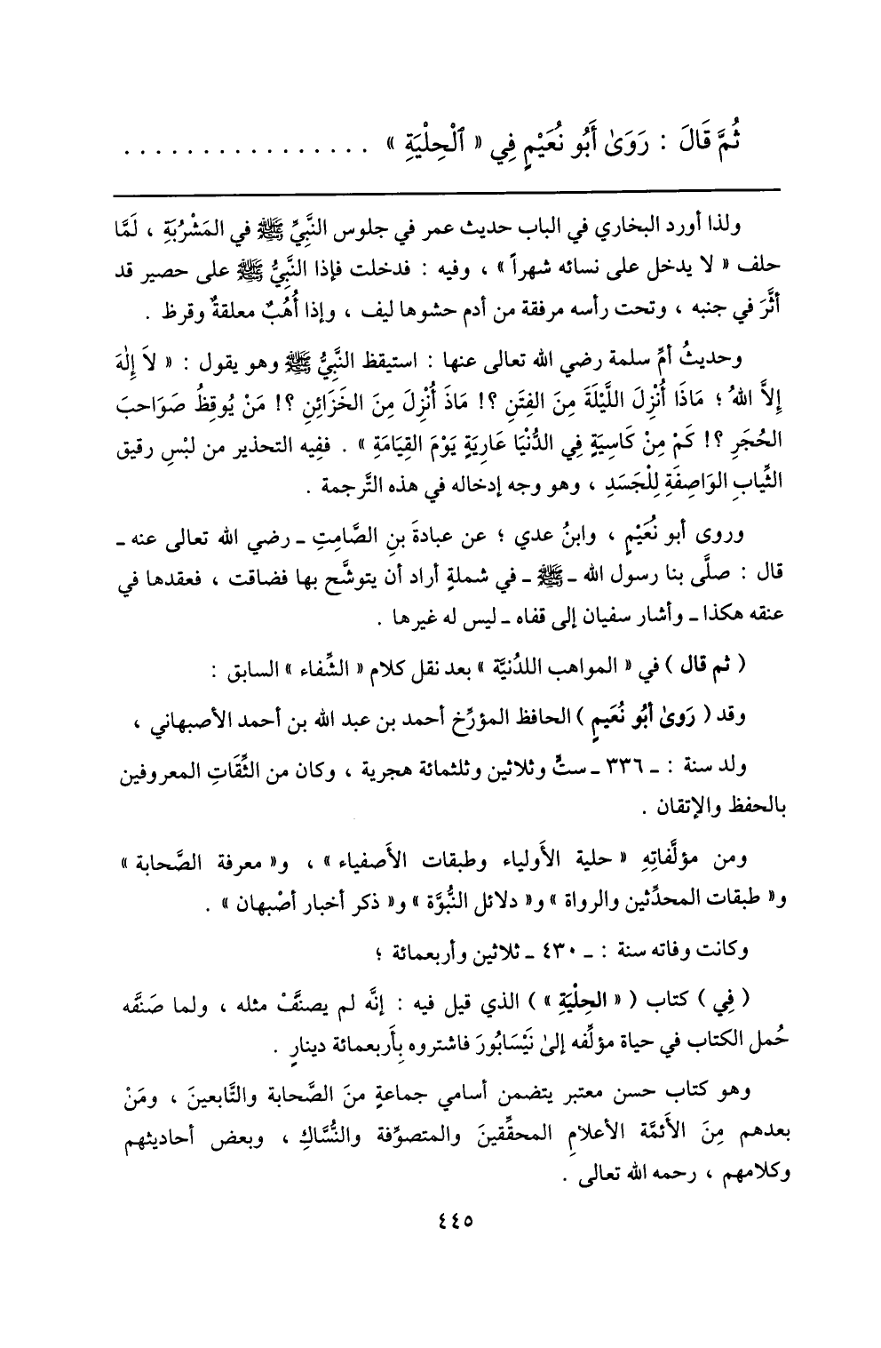 ثمّ قال: روى أبو نعيم في «الحلية» ...