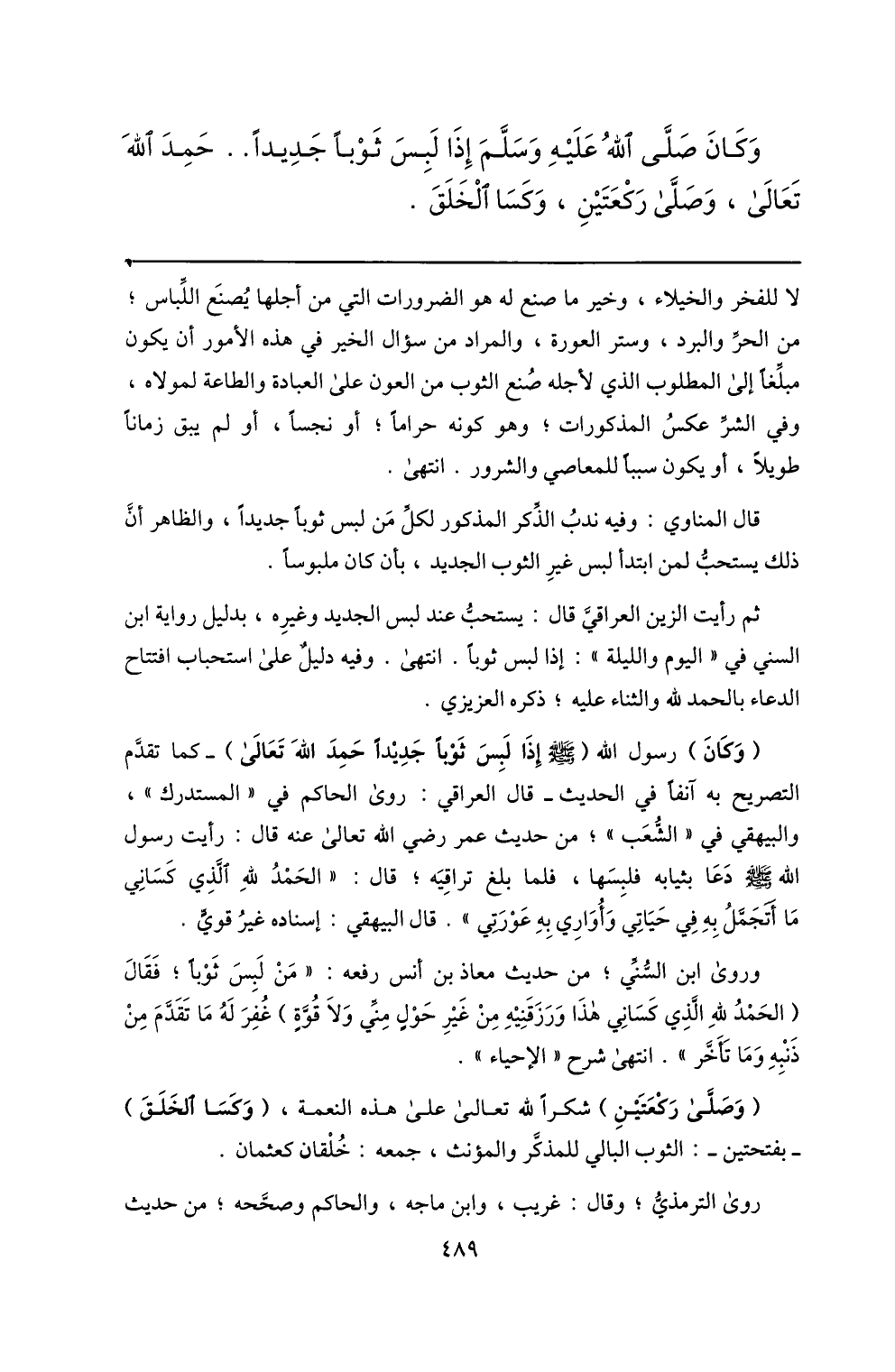وكان صلّى الله عليه وسلّم إذا لبس ثوبا جديدا.. حمد الله تعالى، وصلّى ركعتين، وكسا الخلق.