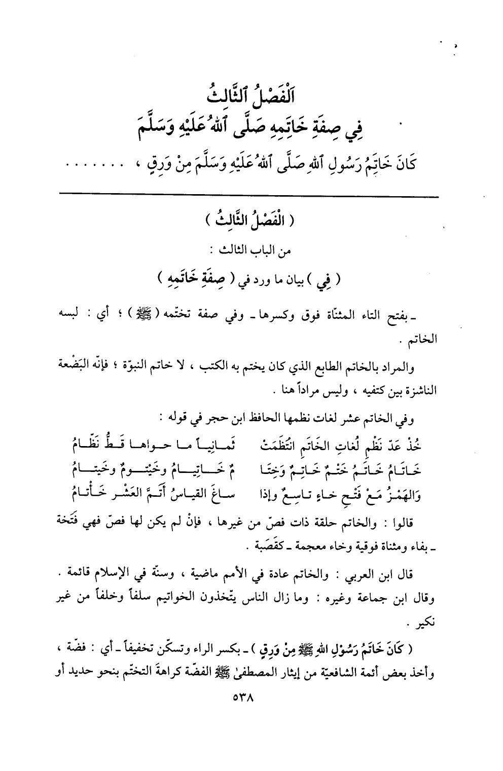 [الفصل الثّالث في صفة خاتمه صلّى الله عليه وسلّم]