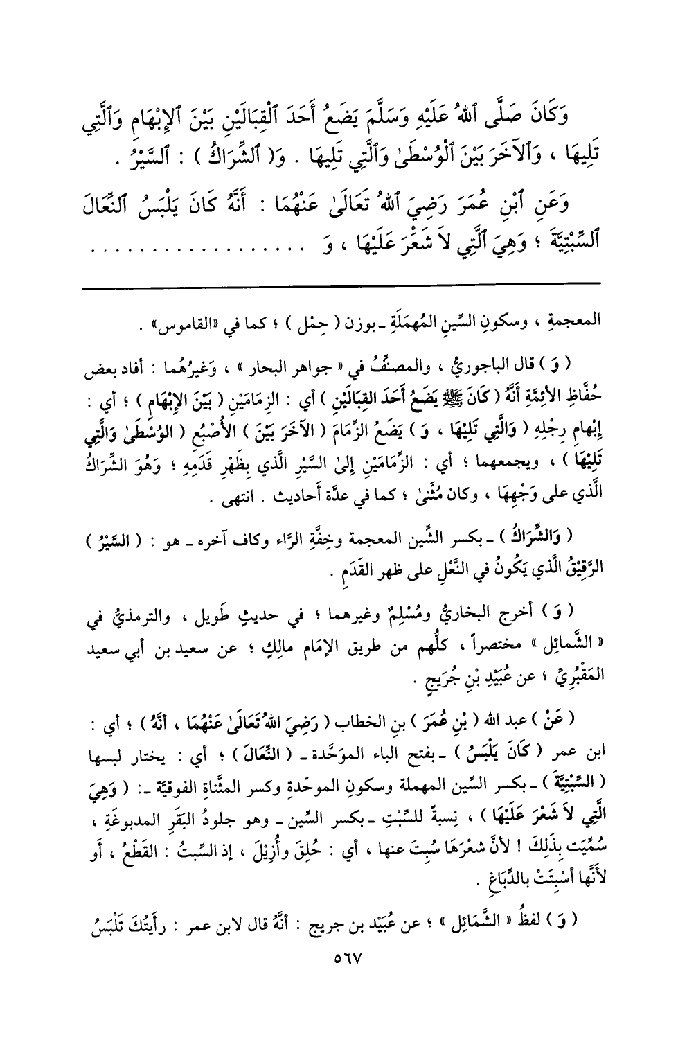 وعن ابن عمر رضي الله تعالى عنهما: أنّه كان يلبس النّعال السّبتيّة؛ وهي الّتي لا شعر عليها، و ...