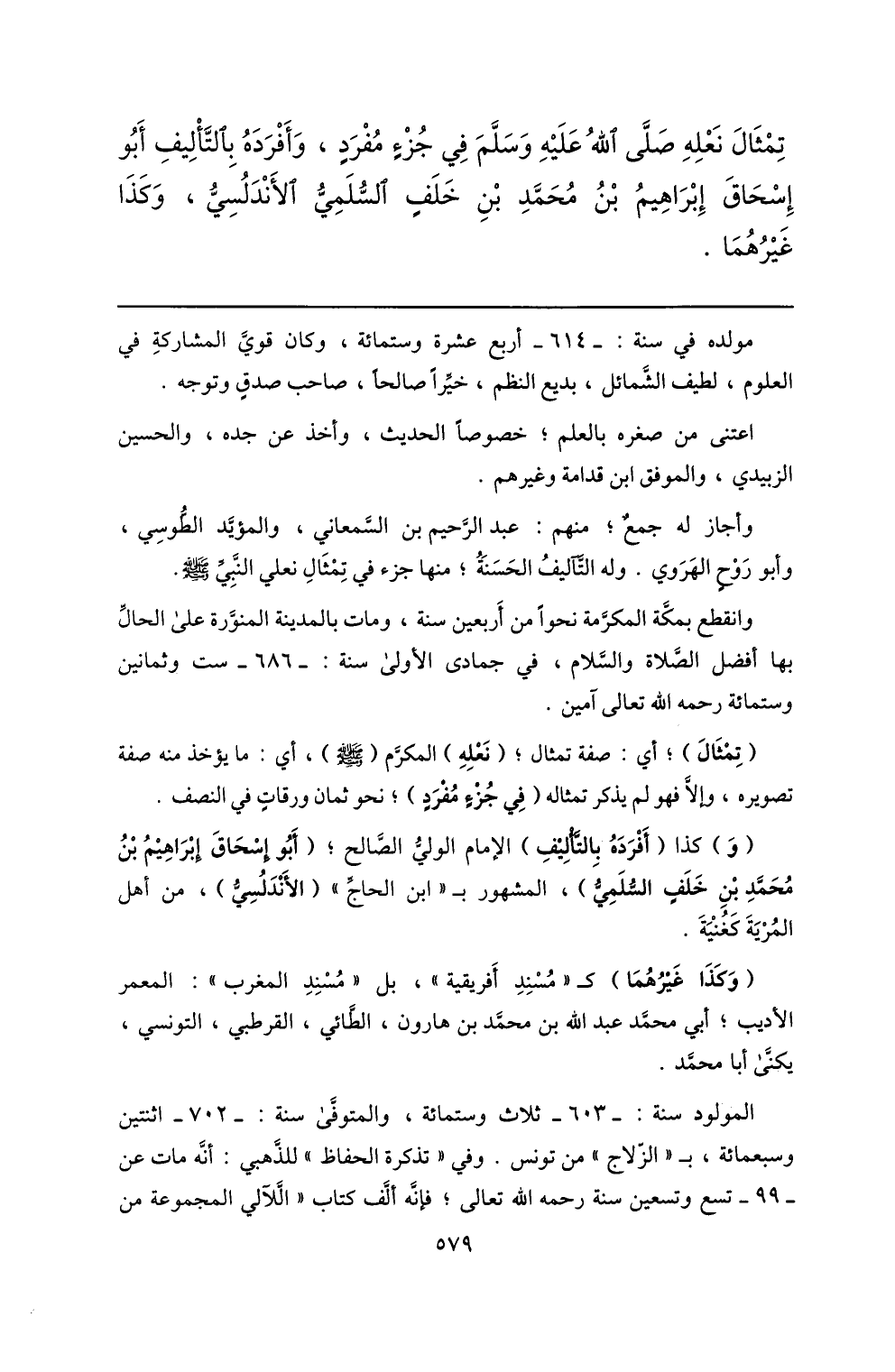 (و) كذا (أفرده بالتّأليف) الإمام الوليّ الصّالح؛ (أبو إسحاق إبراهيم بن محمّد بن خلف السّلميّ) ، المشهور ب «ابن الحاجّ» (الأندلسيّ) ، من أهل المرية كغنية.