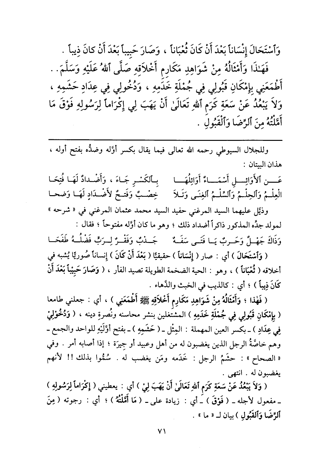 وذيّل عليهما السيد المرغني حفيد السيد محمد عثمان المرغني في «شرحه» لمولد جدّه المذكور ذاكرا أضداد ذلك؛ وهو ما كان أوّله مفتوحا؛ فقال: