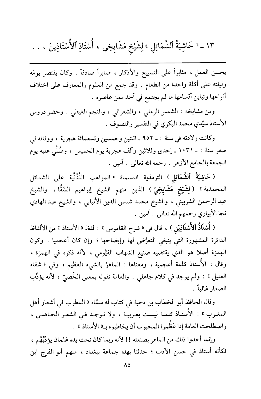 13- «حاشية الشّمائل» لشيخ مشايخي، أستاذ الأستاذين،..