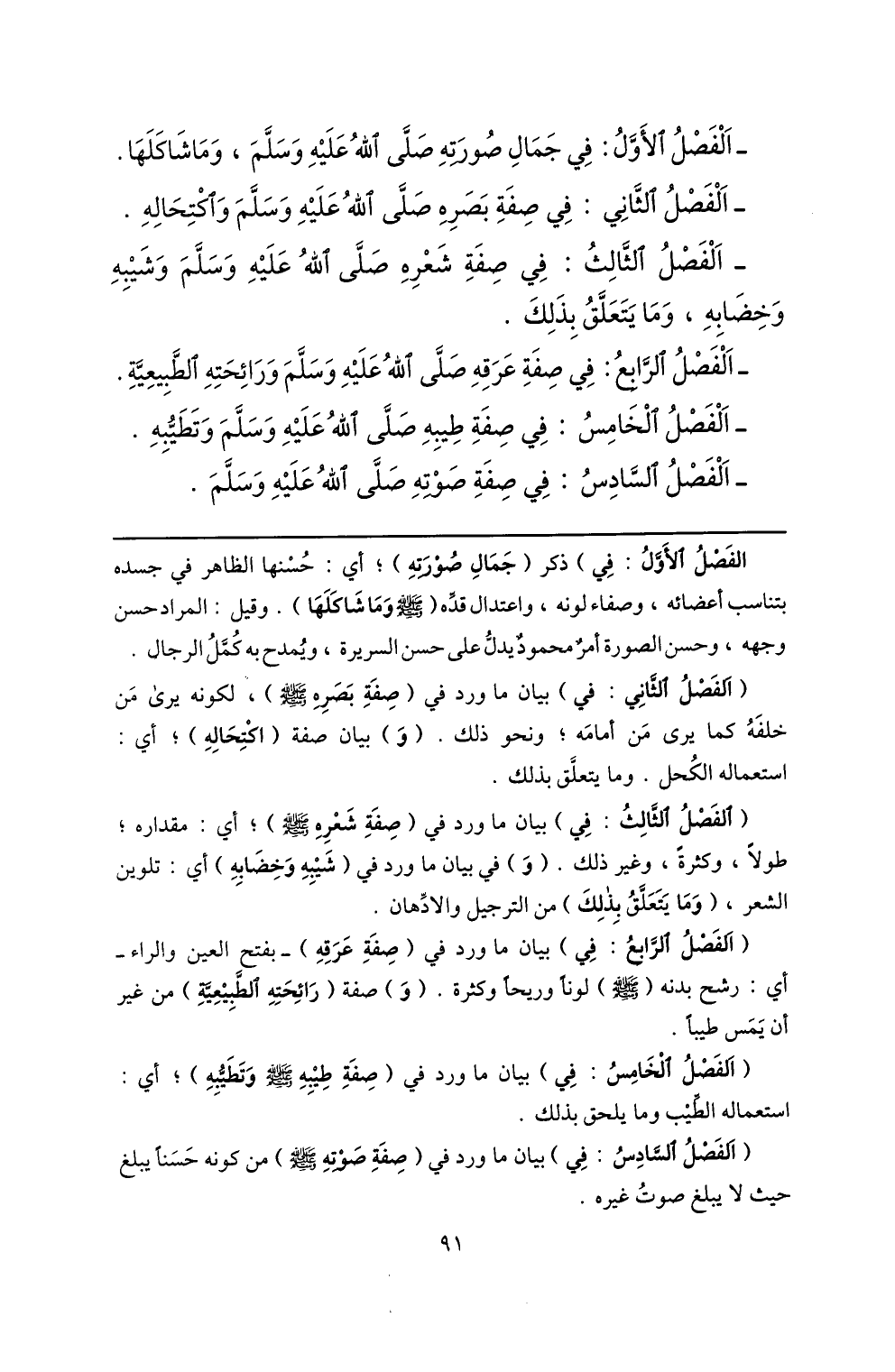 - الفصل الأوّل: في جمال صورته صلّى الله عليه وسلّم، وما شاكلها.
