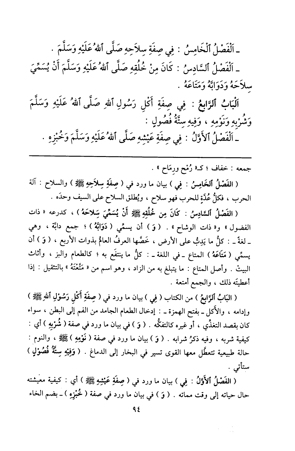 - الفصل الخامس: في صفة سلاحه صلّى الله عليه وسلّم.
