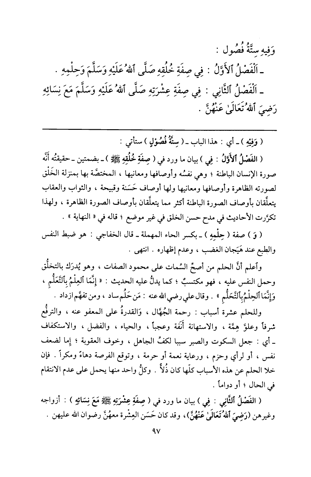 الفصل الأوّل: في صفة خلقه صلّى الله عليه وسلّم وحلمه.
