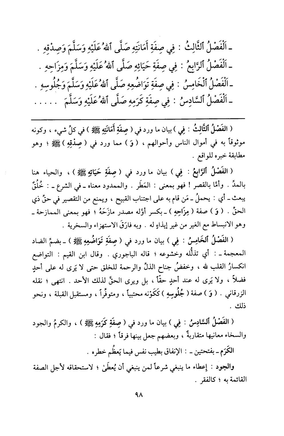 الفصل السّادس: في صفة كرمه صلّى الله عليه وسلّم ...