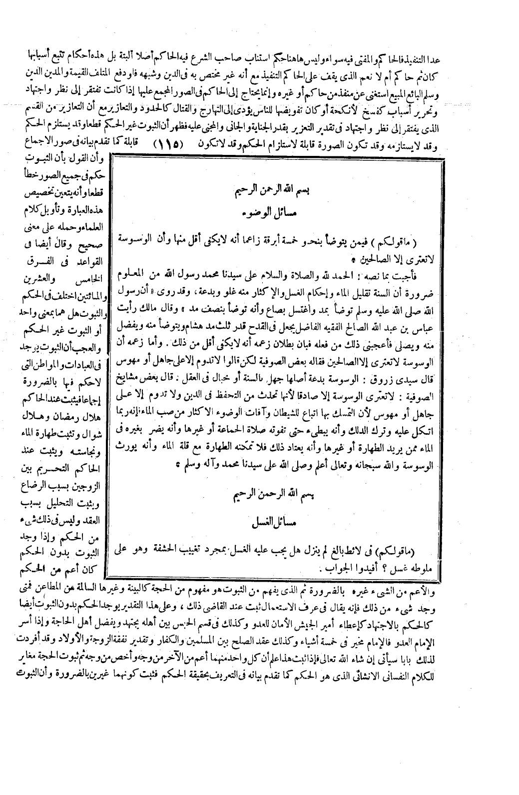 بِسْمِ اللَّهِ الرَّحْمَنِ الرَّحِيمِ مَسَائِلُ الْوُضُوءِ (مَا قَوْلُكُمْ) فِيمَنْ يَتَوَضَّأُ بِنَحْوِ خَمْسَةِ أَبْرِقَةٍ زَاعِمًا أَنَّهُ لَا يَكْفِي أَقَلُّ مِنْهَا وَأَنَّ الْوَسْوَسَةَ لَا تَعْتَرِي إلَّا الصَّالِحِينَ.
