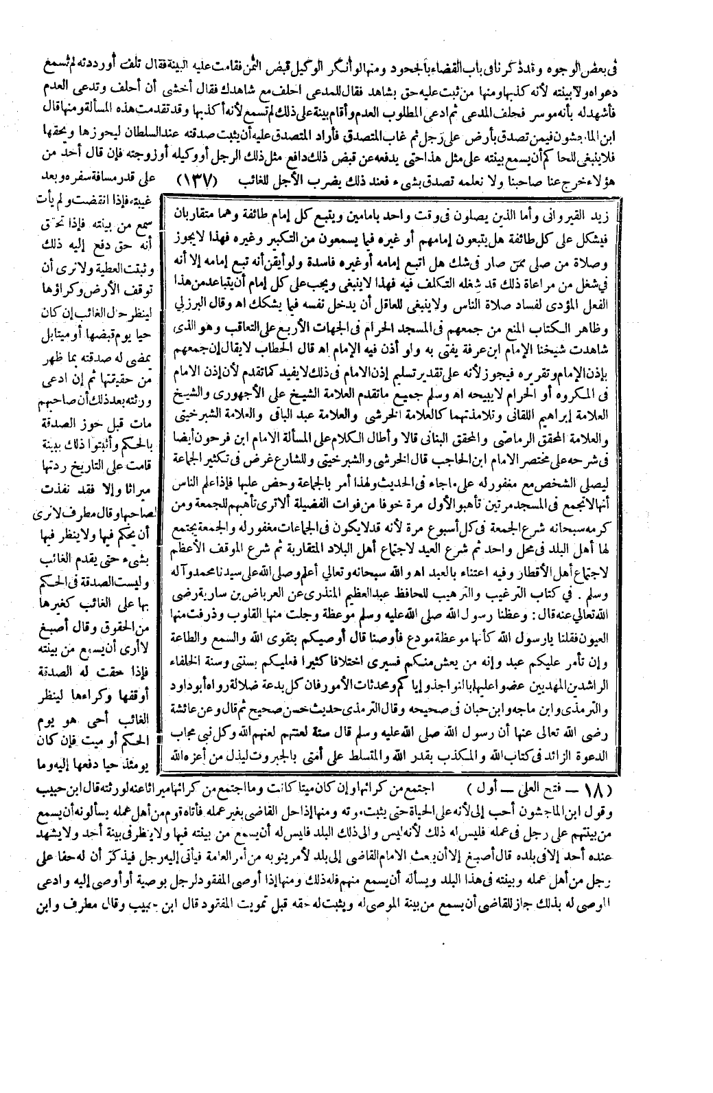 وَسَلَّمَ جَمِيعَ مَا تَقَدَّمَ الْعَلَّامَةُ الشَّيْخُ عَلِيٌّ الْأُجْهُورِيُّ وَالشَّيْخُ الْعَلَّامَةُ إبْرَاهِيمُ اللَّقَانِيُّ وَتَلَامِذَتُهُمَا كَالْعَلَّامَةِ الْخَرَشِيِّ وَالْعَلَّامَةِ عَبْدِ الْبَاقِي وَالْعَلَّامَةِ الشَّبْرَخِيتِيُّ وَالْعَلَّامَةُ الْمُحَقِّقُ الرَّمَاصِيُّ وَالْمُحَقِّقُ الْبُنَانِيُّ قَالَا وَأَطَالَ الْكَلَامَ عَلَى الْمَسْأَلَةِ الْإِمَامُ ابْنُ فَرْحُونٍ أَيْضًا فِي شَرْحِهِ عَلَى مُخْتَصَرِ الْإِمَامِ ابْنِ الْحَاجِبِ قَالَ الْخَرَشِيُّ والشبرخيتي وَلِلشَّارِعِ غَرَضٌ فِي تَكْثِيرِ الْجَمَاعَةِ لِيُصَلِّيَ الشَّخْصُ مَعَ مَغْفُورٍ لَهُ عَلَى مَا جَاءَ فِي الْحَدِيثِ وَلِهَذَا أَمَرَ بِالْجَمَاعَةِ وَحَضَّ عَلَيْهَا فَإِذَا عَلِمَ النَّاسُ أَنَّهَا لَا تُجْمَعُ فِي الْمَسْجِدِ مَرَّتَيْنِ تَأَهَّبُوا لِأَوَّلِ مَرَّةٍ خَوْفًا مِنْ فَوَاتِ الْفَضِيلَةِ أَلَا تَرَى تَأَهُّبَهُمْ لِلْجُمُعَةِ وَمِنْ كَرْمِهِ - سُبْحَانَهُ - شَرَعَ الْجُمُعَةَ فِي كُلِّ أُسْبُوعٍ مَرَّةً لِأَنَّهُ قَدْ لَا يَكُونُ فِي الْجَمَاعَاتِ مَغْفُورٌ لَهُ وَالْجُمُعَةُ يَجْتَمِعُ لَهَا أَهْلُ الْبَلَدِ فِي مَحَلٍّ وَاحِدٍ ثُمَّ شَرَعَ الْعِيدَ لِاجْتِمَاعِ أَهْلِ الْبِلَادِ الْمُتَقَارِبَةِ ثُمَّ شَرَعَ الْمَوْقِفَ الْأَعْظَمَ لِاجْتِمَاعِ أَهْلِ الْأَقْطَارِ وَفِيهِ اعْتِنَاءٌ بِالْعَبْدِ اهـ، وَاَللَّهُ - سُبْحَانَهُ وَتَعَالَى - أَعْلَمُ وَصَلَّى اللَّهُ عَلَى سَيِّدِنَا مُحَمَّدٍ وَآلِهِ وَسَلَّمَ.
