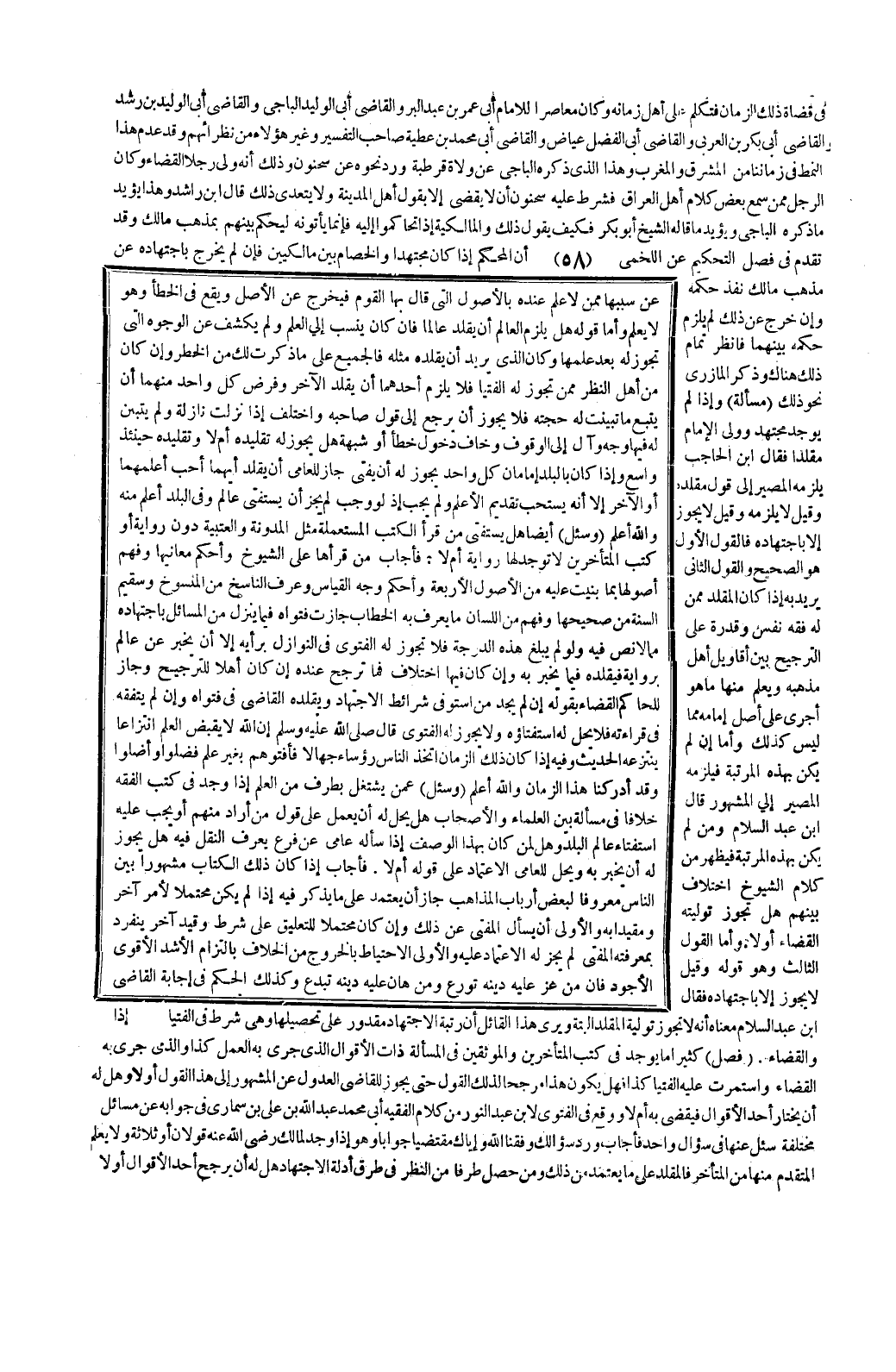 فَأَجَابَ مَنْ قَرَأَهَا عَلَى الشُّيُوخِ وَأَحْكَمَ مَعَانِيَهَا وَفَهِمَ أُصُولَهَا بِمَا بُنِيَتْ عَلَيْهِ مِنْ الْأُصُولِ الْأَرْبَعَةِ وَأَحْكَمَ وَجْهَ الْقِيَاسِ وَعَرَفَ النَّاسِخَ مِنْ الْمَنْسُوخِ وَسَقِيمَ السُّنَّةِ مِنْ صَحِيحِهَا وَفَهِمَ مِنْ اللِّسَانِ مَا يَعْرِفُ بِهِ الْخِطَابَ جَازَتْ فَتْوَاهُ فِيمَا يَنْزِلُ مِنْ الْمَسَائِلِ بِاجْتِهَادِهِ مِمَّا لَا نَصَّ فِيهِ وَلَوْ لَمْ يَبْلُغْ هَذِهِ الدَّرَجَةَ فَلَا تَجُوزُ لَهُ الْفَتْوَى فِي النَّوَازِلِ بِرَأْيِهِ إلَّا أَنْ يُخْبِرَ عَنْ عَالِمٍ بِرِوَايَةٍ فَيُقَلِّدُهُ فِيمَا يُخْبِرُ بِهِ وَإِنْ كَانَ فِيهَا اخْتِلَافٌ فَمَا تَرَجَّحَ عِنْدَهُ إنْ كَانَ أَهْلًا لِلتَّرْجِيحِ، وَجَازَ لِلْحَاكِمِ الْقَضَاءُ بِقَوْلِهِ إنْ لَمْ يَجِدْ مَنْ اسْتَوْفَى شَرَائِطَ الِاجْتِهَادِ وَيُقَلِّدُهُ الْقَاضِي فِي فَتْوَاهُ وَإِنْ لَمْ يَتَفَقَّهْ فِي قِرَاءَتِهِ فَلَا يَحِلُّ لَهُ اسْتِفْتَاؤُهُ وَلَا يَجُوزُ لَهُ الْفَتْوَى قَالَ - صَلَّى اللَّهُ عَلَيْهِ وَسَلَّمَ - «إنَّ اللَّهَ لَا يَقْبِضُ الْعِلْمَ انْتِزَاعًا يَنْتَزِعُهُ الْحَدِيثُ وَفِيهِ إذَا كَانَ ذَلِكَ الزَّمَانُ اتَّخَذَ النَّاسُ رُؤَسَاءَ جُهَّالًا فَأَفْتَوْهُمْ بِغَيْرِ عِلْمٍ فَضَلُّوا وَأَضَلُّوا» وَقَدْ أَدْرَكْنَا هَذَا الزَّمَانَ وَاَللَّهُ أَعْلَمُ.
