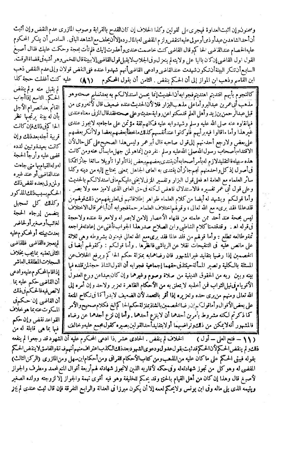 وَأَمَّا قَوْلُكُمْ إنَّ رِضَا الْخَصْمَيْنِ بِالشَّاذِّ بِمَنْزِلَةِ حُكْمِ الْحَاكِمِ إلَخْ فَكَلَامٌ صَحِيحٌ، وَالْأَمْرُ كَمَا ذَكَرْتُمْ لَكِنَّهُ مَشْرُوطٌ بِأَمْرَيْنِ أَحَدُهُمَا أَنْ لَا يَنْزِعَ أَحَدُهُمَا.