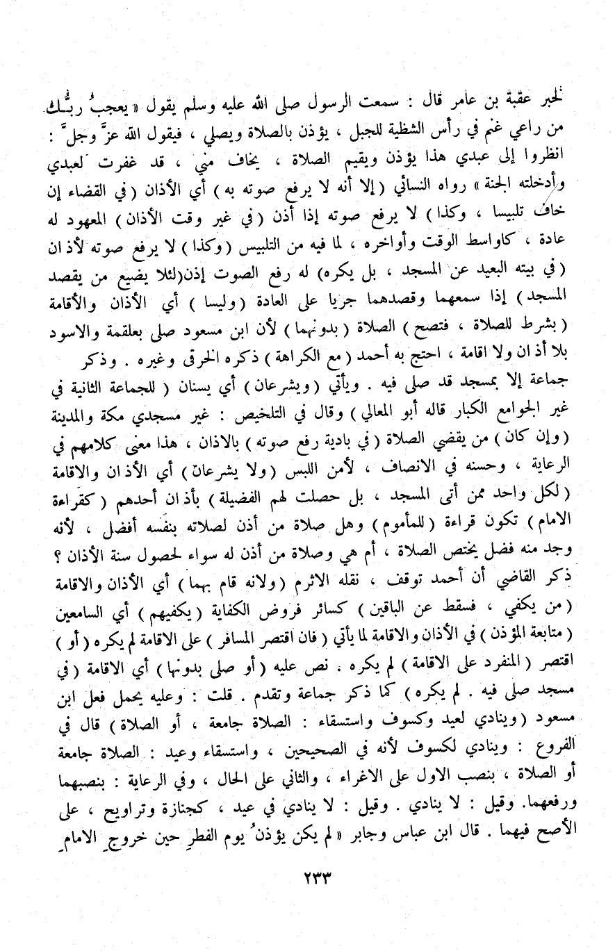 لِخَبَرِ عُقْبَةَ بْنِ عَامِرٍ قَالَ سَمِعْت الرَّسُولَ - صَلَّى اللَّهُ عَلَيْهِ وَسَلَّمَ - يَقُولُ «يَعْجَبُ رَبُّك مِنْ رَاعِي غَنَمٍ فِي رَأْسِ الشَّظِيَّةِ لِلْجَبَلِ، يُؤَذِّنُ بِالصَّلَاةِ وَيُصَلِّي، فَيَقُولُ اللَّهُ عَزَّ وَجَلَّ: اُنْظُرُوا إلَى عَبْدِي هَذَا يُؤَذِّنُ وَيُقِيمُ الصَّلَاةَ، يَخَافُ مِنِّي قَدْ غَفَرْت لِعَبْدِي وَأَدْخَلْته الْجَنَّةَ» رَوَاهُ النَّسَائِيُّ (إلَّا أَنَّهُ لَا يَرْفَعُ صَوْتَهُ بِهِ) أَيْ: الْأَذَانِ (فِي الْقَضَاءِ إنْ خَافَ تَلْبِيسًا، وَكَذَا) لَا يَرْفَعُ صَوْتَهُ إذَا أَذَّنَ (فِي غَيْرِ وَقْتِ الْأَذَانِ) الْمَعْهُودِ لَهُ عَادَةً كَأَوَاسِطِ الْوَقْتِ وَأَوَاخِرِهِ، لِمَا فِيهِ مِنْ التَّلْبِيسِ.