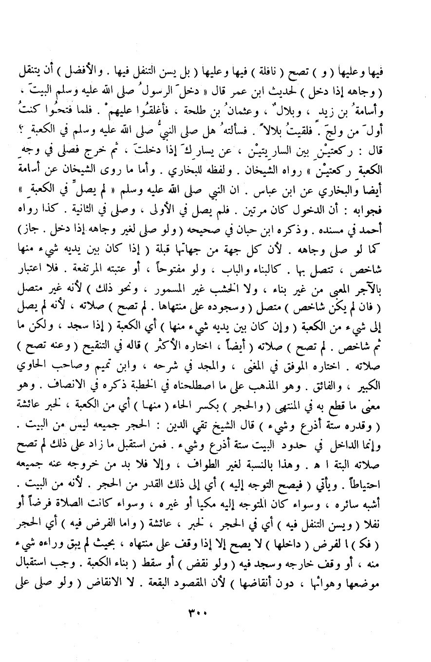 وَأَمَّا مَا رَوَى الشَّيْخَانِ عَنْ أُسَامَةَ أَيْضًا وَالْبُخَارِيُّ عَنْ ابْنِ عَبَّاسٍ أَنَّ النَّبِيَّ - صَلَّى اللَّهُ عَلَيْهِ وَسَلَّمَ - لَمْ يُصَلِّ فِي الْكَعْبَةِ فَجَوَابُهُ: أَنَّ الدُّخُولَ كَانَ مَرَّتَيْنِ فَلَمْ يُصَلِّ فِي الْأُولَى وَصَلَّى فِي الثَّانِيَةِ كَذَا رَوَاهُ أَحْمَدُ فِي مُسْنَدِهِ وَذَكَرَهُ ابْنُ حِبَّانَ فِي صَحِيحِهِ (وَلَوْ صَلَّى لِغَيْرِ وِجَاهِهِ إذَا دَخَلَ جَازَ) كَمَا لَوْ صَلَّى وِجَاهَهُ لِأَنَّ كُلَّ جِهَةٍ مِنْ جِهَاتِهَا قِبْلَةٌ.