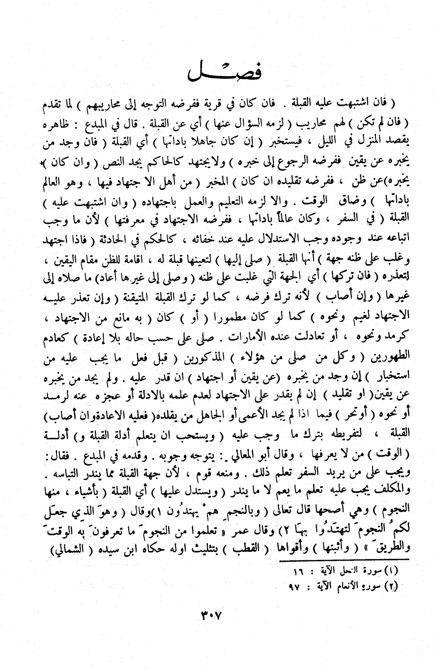 وَالْمُكَلَّفُ يَجِبُ عَلَيْهِ تَعَلُّمُ مَا يَعُمَّ لَا مَا يَنْدُرُ (وَيَسْتَدِلُّ عَلَيْهَا) أَيْ الْقِبْلَةِ (بِأَشْيَاءَ مِنْهَا النُّجُومُ) وَهِيَ أَصَحُّهَا قَالَ تَعَالَى {وَبِالنَّجْمِ هُمْ يَهْتَدُونَ} [النحل: ١٦] وَقَالَ {وَهُوَ الَّذِي جَعَلَ لَكُمُ النُّجُومَ لِتَهْتَدُوا بِهَا} [الأنعام: ٩٧] .