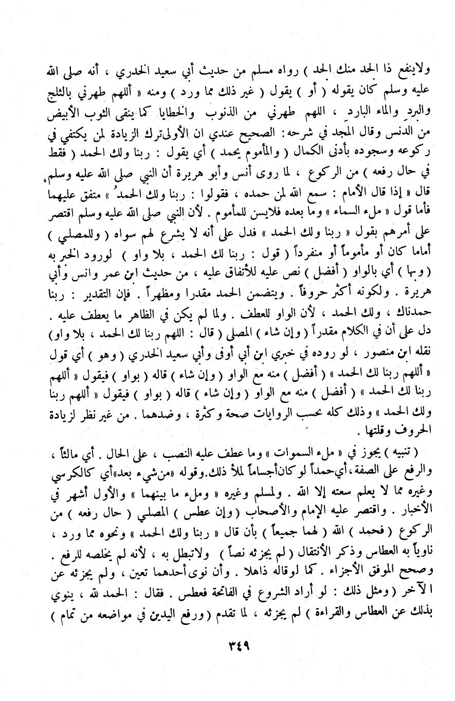 وَلَا يَنْفَعُ ذَا الْجَدِّ مِنْك الْجَدُّ» رَوَاهُ مُسْلِمٌ مِنْ حَدِيثِ أَبِي سَعِيدٍ الْخُدْرِيِّ، أَنَّهُ - صَلَّى اللَّهُ عَلَيْهِ وَسَلَّمَ - كَانَ يَقُولُهُ (أَوْ) يَقُولُ (غَيْرَ ذَلِكَ مِمَّا وَرَدَ) وَمِنْهُ «اللَّهُمَّ طَهِّرْنِي بِالثَّلْجِ وَالْبَرَدِ وَالْمَاءِ الْبَارِدِ، اللَّهُمَّ طَهِّرْنِي مِنْ الذُّنُوبِ وَالْخَطَايَا كَمَا يُنَقَّى الثَّوْبُ الْأَبْيَضُ مِنْ الدَّنَسِ» .