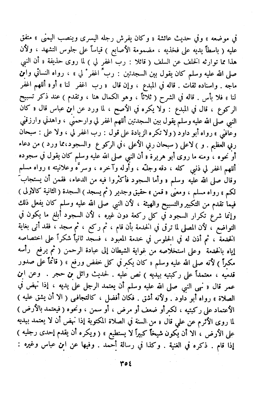 (وَلَا تُكْرَهُ الزِّيَادَةُ عَلَى قَوْلِ: رَبِّ اغْفِرْ لِي، وَلَا عَلَى سُبْحَانَ رَبِّي الْعَظِيمِ وَ) لَا عَلَى (سُبْحَانَ رَبِّي الْأَعْلَى، فِي الرُّكُوعِ وَالسُّجُودِ، مِمَّا وَرَدَ) مِنْ دُعَاءٍ أَوْ نَحْوِهِ، وَمِنْهُ مَا رَوَى أَبُو هُرَيْرَةَ «أَنَّ النَّبِيَّ - صَلَّى اللَّهُ عَلَيْهِ وَسَلَّمَ - كَانَ يَقُولُ فِي سُجُودِهِ اللَّهُمَّ اغْفِرْ لِي ذَنْبِي كُلَّهُ، دِقَّهُ وَجُلَّهُ، وَأَوَّلَهُ وَآخِرَهُ، وَسِرَّهُ وَعَلَانِيَتَهُ» رَوَاهُ مُسْلِمٌ.