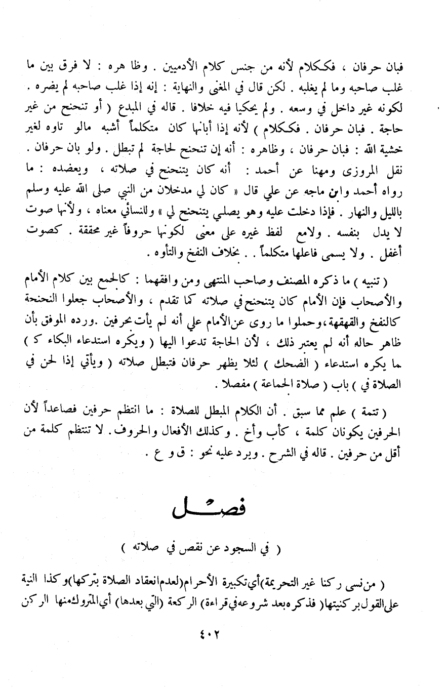 تَنْبِيهٌ مَا ذَكَرَهُ الْمُصَنِّفُ وَصَاحِبُ الْمُنْتَهَى وَمَنْ وَافَقَهُمَا: كَالْجَمْعِ بَيْنَ كَلَامِ الْإِمَامِ وَالْأَصْحَابِ فَإِنَّ الْإِمَامَ كَانَ يَتَنَحْنَحُ فِي صَلَاتِهِ كَمَا تَقَدَّمَ، وَالْأَصْحَابُ جَعَلُوا النَّحْنَحَةَ كَالنَّفْخِ وَالْقَهْقَهَةِ، وَحَمَلُوا مَا رُوِيَ عَنْ الْإِمَامِ عَلِيٍّ أَنَّهُ لَمْ يَأْتِ بِحَرْفَيْنِ وَرَدَّهُ الْمُوَفَّقُ بِأَنَّ ظَاهِرَ حَالِهِ أَنَّهُ لَمْ يَعْتَبِرْ ذَلِكَ،؛ لِأَنَّ الْحَاجَة تَدْعُو إلَيْهَا (وَيُكْرَهُ اسْتِدْعَاءُ الْبُكَاءِ كَ) مَا يُكْرَهُ اسْتِدْعَاءُ (الضَّحِكِ) لِئَلَّا يَظْهَرُ حَرْفَانِ فَتَبْطُلَ صَلَاتُهُ (وَيَأْتِي إذَا لَحَنَ فِي الصَّلَاةِ فِي) بَابِ (صَلَاةِ الْجَمَاعَةِ) مُفَصَّلًا تَتِمَّةٌ عُلِمَ مِمَّا سَبَقَ أَنَّ الْكَلَامَ الْمُبْطِلَ لِلصَّلَاةِ: مَا انْتَظَمَ حَرْفَيْنِ فَصَاعِدًا؛ لِأَنَّ الْحَرْفَيْنِ يَكُونَانِ كَلِمَةً، كَأَبٍ وَأَخٍ وَكَذَلِكَ الْأَفْعَالُ وَالْحُرُوفُ لَا تَنْتَظِمُ كَلِمَةً مِنْ أَقَلِّ مِنْ الْحَرْفَيْنِ قَالَهُ فِي الشَّرْحِ وَيَرِدُ عَلَيْهِ نَحْوُ: (قِ) وَ (عِ) .
