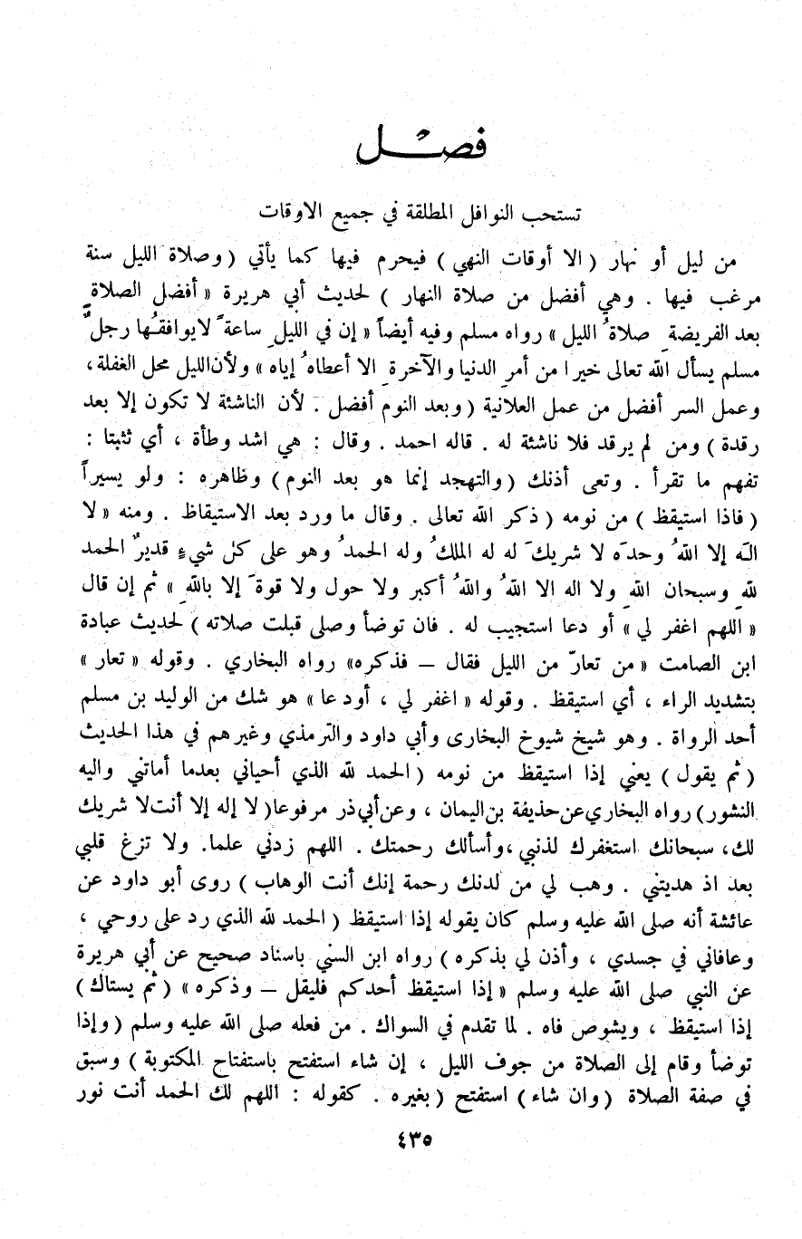 [فَصْلٌ تُسْتَحَبُّ النَّوَافِلُ الْمُطْلَقَةُ فِي جَمِيعِ الْأَوْقَاتِ]