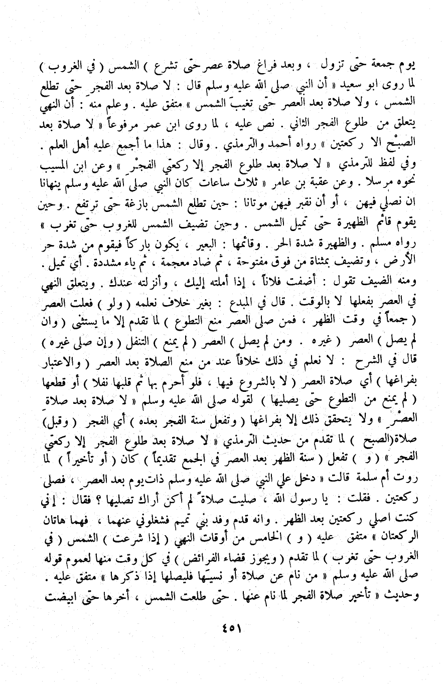 يَوْمَ جُمُعَةٍ حَتَّى تَزُولَ، وَبَعْدَ فَرَاغِ صَلَاةِ عَصْرٍ حَتَّى تَشْرَعَ) الشَّمْسُ (فِي الْغُرُوبِ) لِمَا رَوَى أَبُو سَعِيدٍ «أَنَّ النَّبِيَّ - صَلَّى اللَّهُ عَلَيْهِ وَسَلَّمَ - قَالَ: لَا صَلَاةَ بَعْدَ الْفَجْرِ حَتَّى تَطْلُعَ الشَّمْسُ، وَلَا صَلَاةَ بَعْدَ الْعَصْرِ حَتَّى تَغِيبَ الشَّمْسُ» مُتَّفَقٌ عَلَيْهِ.