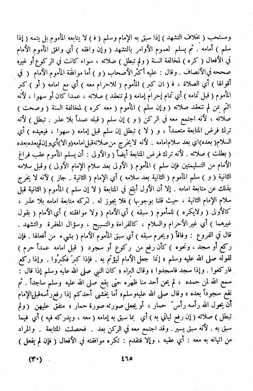 وَمُسْتَحَبٍّ (بِخِلَافِ التَّشَهُّدِ) إذَا سَبَقَ بِهِ الْإِمَامُ وَسَلَّمَ (فَ) لَا يُتَابِعُهُ الْمَأْمُومُ بَلْ يُتِمُّهُ (إذَا سَلَّمَ) إمَامُهُ ثُمَّ يُسَلِّمُ لِعُمُومِ الْأَوَامِرِ بِالتَّشَهُّدِ.