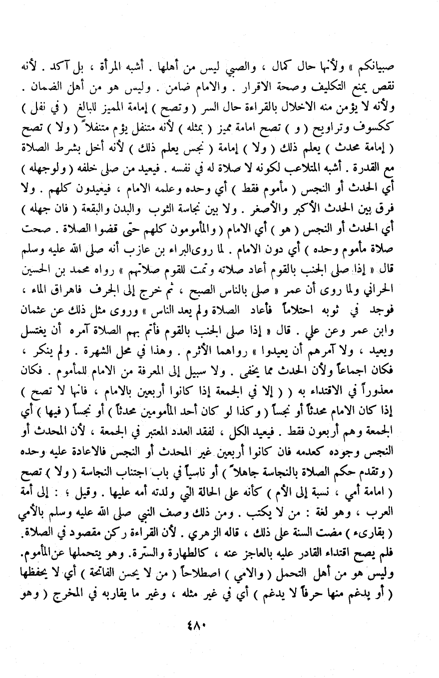 صِبْيَانَكُمْ» وَلِأَنَّهَا حَالُ كَمَالٍ، وَالصَّبِيُّ لَيْسَ مِنْ أَهْلِهَا أَشْبَهَ الْمَرْأَةَ بَلْ آكَدُ؛ لِأَنَّهُ نَقْصٌ يَمْنَعُ التَّكْلِيفَ وَصِحَّةَ الْإِقْرَارِ وَالْإِمَامُ ضَامِنٌ وَلَيْسَ هُوَ مِنْ أَهْلِ الضَّمَانِ وَلِأَنَّهُ لَا يُؤْمَنُ مِنْهُ الْإِخْلَالُ بِالْقِرَاءَةِ حَالَ السِّرِّ.