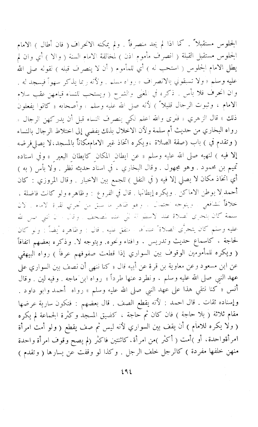 قَالَ أَحْمَدُ؛ لِأَنَّهُ يَقْطَعُ الصَّفَّ قَالَ بَعْضُهُمْ فَتَكُونُ سَارِيَةٌ عَرْضُهَا مَقَامَ ثَلَاثَةِ (بِلَا حَاجَةٍ) فَإِنْ كَانَ ثَمَّ حَاجَةٌ كَضِيقِ الْمَسْجِدِ وَكَثْرَةِ الْجَمَاعَةِ لَمْ يُكْرَهْ (وَلَا يُكْرَهُ لِلْإِمَامِ) أَنْ يَقِفَ بَيْنَ السَّوَارِي؛ لِأَنَّهُ لَيْسَ ثَمَّ صَفٌّ يُقْطَعُ.