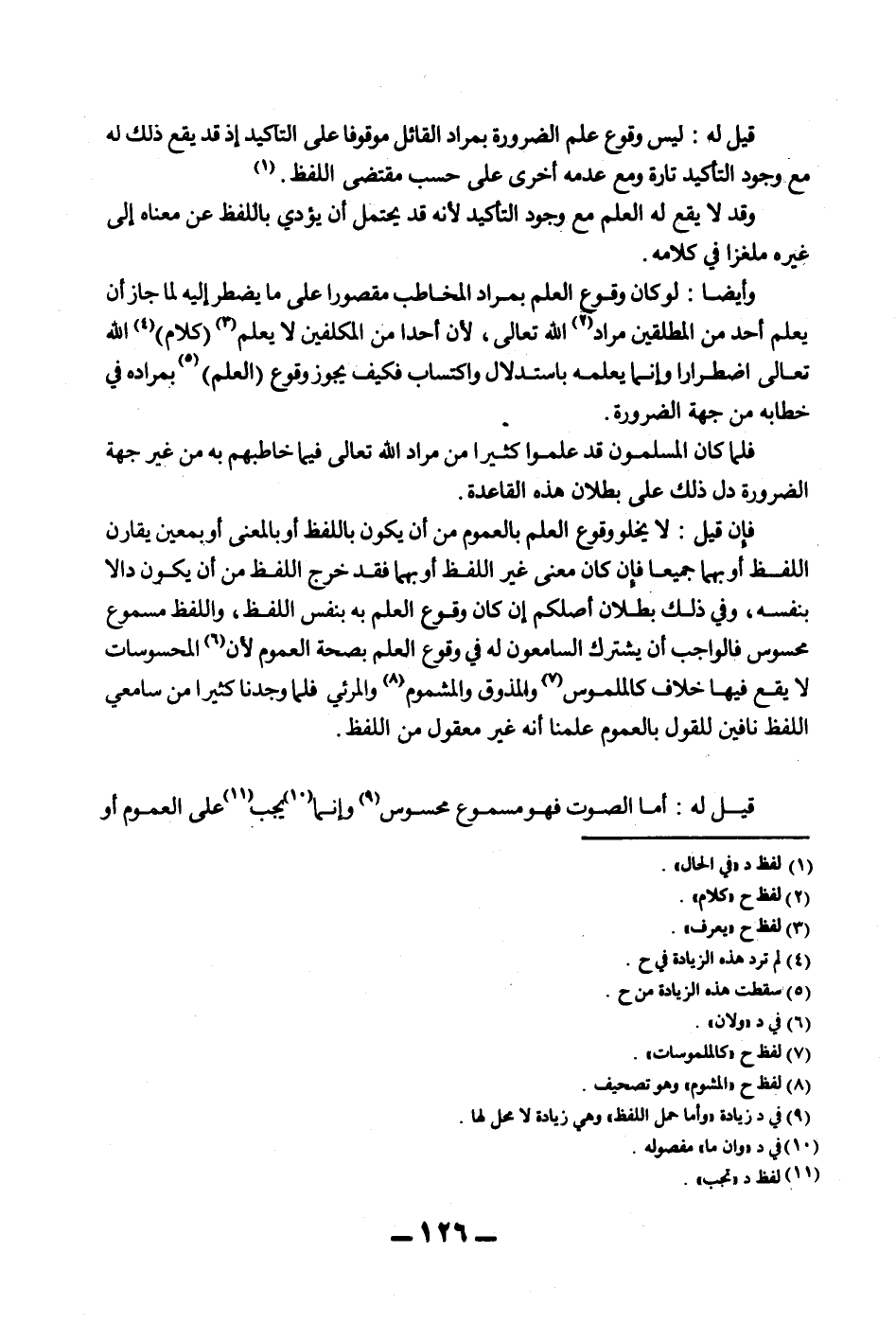 قِيلَ لَهُ: لَيْسَ وُقُوعُ عِلْمِ الضَّرُورَةِ بِمُرَادِ الْقَائِلِ مَوْقُوفًا عَلَى التَّأْكِيدِ إذْ قَدْ يَقَعُ ذَلِكَ لَهُ مَعَ وُجُودِ التَّأْكِيدِ تَارَةً وَمَعَ عَدَمِهِ أُخْرَى عَلَى حَسَبِ مُقْتَضَى اللَّفْظِ. وَقَدْ لَا يَقَعُ لَهُ الْعِلْمُ مَعَ وُجُودِ التَّأْكِيدِ لِأَنَّهُ قَدْ يَحْتَمِلُ أَنْ يُؤَدِّيَ بِاللَّفْظِ عَنْ مَعْنَاهُ إلَى غَيْرِهِ مُلْغِزًا فِي كَلَامِهِ. وَأَيْضًا: لَوْ كَانَ وُقُوعُ الْعِلْمِ بِمُرَادِ الْمُخَاطَبِ مَقْصُورًا عَلَى مَا يُضْطَرُّ إلَيْهِ لَمَا جَازَ أَنْ يَعْلَمَ أَحَدٌ مِنْ الْمُطْلِقِينَ مُرَادَ اللَّهِ تَعَالَى، لِأَنَّ أَحَدًا مِنْ الْمُكَلَّفِينَ لَا يَعْلَمُ (كَلَامَ) اللَّهِ تَعَالَى اضْطِرَارًا وَإِنَّمَا يَعْلَمُهُ بِاسْتِدْلَالٍ وَاكْتِسَابٍ فَكَيْفَ يَجُوزُ وُقُوعُ (الْعِلْمِ) بِمُرَادِهِ فِي خِطَابِهِ مِنْ جِهَةِ الضَّرُورَةِ. فَلَمَّا كَانَ الْمُسْلِمُونَ قَدْ عَلِمُوا كَثِيرًا مِنْ مُرَادِ اللَّهِ تَعَالَى فِيمَا خَاطَبَهُمْ بِهِ مِنْ غَيْرِ جِهَةِ الضَّرُورَةِ دَلَّ ذَلِكَ عَلَى بُطْلَانِ هَذِهِ الْقَاعِدَةِ.