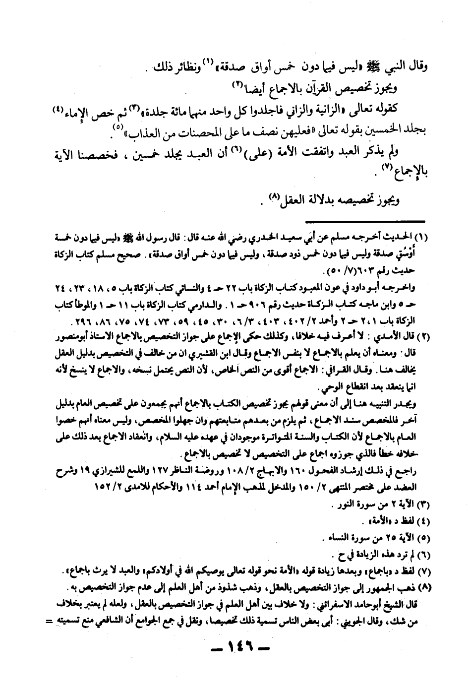 وَقَالَ النَّبِيُّ - صَلَّى اللَّهُ عَلَيْهِ وَسَلَّمَ - «لَيْسَ فِيمَا دُونَ خَمْسِ أَوَاقٍ صَدَقَةٌ» وَنَظَائِرُ ذَلِكَ.