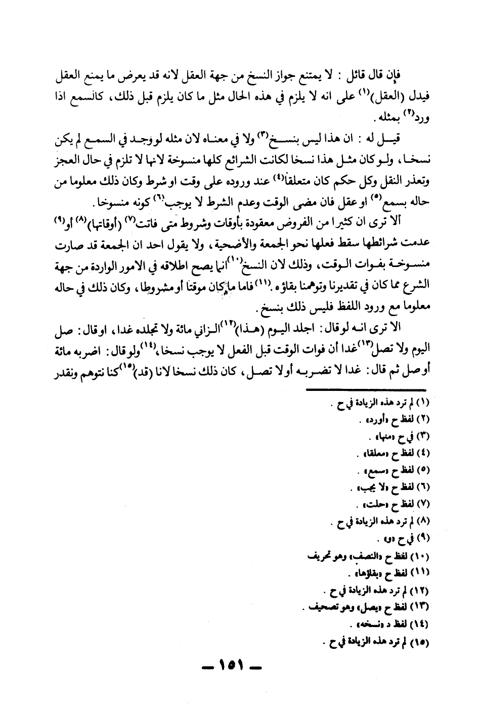 فَإِنْ قَالَ قَائِلٌ: لَا يَمْتَنِعُ جَوَازُ النَّسْخِ مِنْ جِهَةِ الْعَقْلِ لِأَنَّهُ قَدْ يَعْرِضُ مَا يَمْنَعُ الْعَقْلَ فَيَدُلُّ (الْعَقْلُ) عَلَى أَنَّهُ لَا يَلْزَمُ فِي هَذِهِ الْحَالِ مِثْلُ مَا كَانَ يَلْزَمُ قَبْلَ ذَلِكَ، كَالسَّمْعِ إذَا وَرَدَ بِمِثْلِهِ. قِيلَ لَهُ: إنَّ هَذَا لَيْسَ بِنَسْخٍ وَلَا فِي مَعْنَاهُ لِأَنَّ مِثْلَهُ لَوْ وُجِدَ فِي السَّمْعِ لَمْ يَكُنْ نَسْخًا، وَلَوْ كَانَ مِثْلُ هَذَا نَسْخًا لَكَانَتْ الشَّرَائِعُ كُلُّهَا مَنْسُوخَةً لِأَنَّهَا لَا تَلْزَمُ فِي حَالِ الْعَجْزِ وَتَعَذُّرِ النَّقْلِ وَكُلُّ حُكْمٍ كَانَ مُتَعَلِّقًا عِنْدَ وُرُودِهِ عَلَى وَقْتٍ أَوْ شَرْطٍ وَكَانَ ذَلِكَ مَعْلُومًا مِنْ حَالِهِ بِسَمْعٍ أَوْ عَقْلٍ فَإِنْ مَضَى الْوَقْتُ وَعُدِمَ الشَّرْطُ لَا يُوجِبُ كَوْنَهُ مَنْسُوخًا. أَلَا تَرَى أَنَّ كَثِيرًا مِنْ الْفُرُوضِ مَعْقُودَةٌ بِأَوْقَاتٍ وَشُرُوطٍ مَتَى فَاتَتْ (أَوْقَاتُهَا) أَوْ عُدِمَتْ شَرَائِطُهَا سَقَطَ فِعْلُهَا نَحْوَ الْجُمُعَةِ وَالْأُضْحِيَّةِ، وَلَا يَقُولُ أَحَدٌ إنَّ الْجُمُعَةَ قَدْ صَارَتْ مَنْسُوخَةً بِفَوَاتِ الْوَقْتِ، وَذَلِكَ لِأَنَّ النَّسْخَ إنَّمَا يَصِحُّ إطْلَاقُهُ فِي الْأُمُورِ الْوَارِدَةِ مِنْ جِهَةِ الشَّرْعِ مِمَّا كَانَ فِي تَقْدِيرِنَا وَتَوَهُّمِنَا بَقَاؤُهُ فَأَمَّا مَا كَانَ مُوَقَّتًا أَوْ مَشْرُوطًا، وَكَانَ ذَلِكَ فِي حَالِهِ مَعْلُومًا مَعَ وُرُودِ اللَّفْظِ فَلَيْسَ ذَلِكَ بِنَسْخٍ.