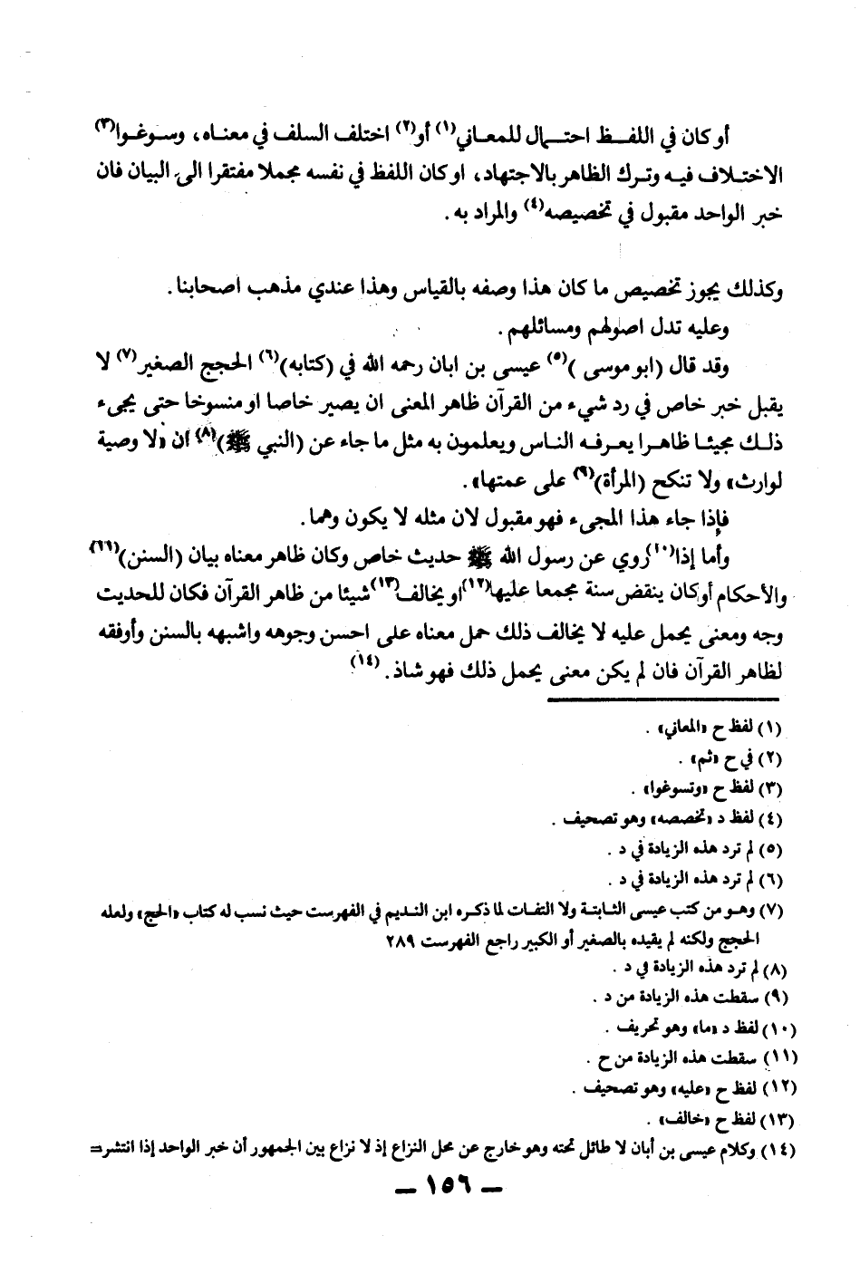 وَقَدْ قَالَ (أَبُو مُوسَى) عِيسَى بْنُ أَبَانَ - رَحِمَهُ اللَّهُ - فِي (كِتَابِهِ) الْحُجَجِ الصَّغِيرِ لَا يُقْبَلُ خَبَرٌ خَاصٌّ فِي رَدِّ شَيْءٍ مِنْ الْقُرْآنِ ظَاهِرَ الْمَعْنَى أَنْ يَصِيرَ خَاصًّا أَوْ مَنْسُوخًا حَتَّى يَجِيءَ ذَلِكَ مَجِيئًا ظَاهِرًا يَعْرِفُهُ النَّاسُ وَيَعْلَمُونَ بِهِ مِثْلُ مَا جَاءَ عَنْ (النَّبِيِّ - صَلَّى اللَّهُ عَلَيْهِ وَسَلَّمَ -) أَنْ «لَا وَصِيَّةَ لِوَارِثٍ» «وَلَا تُنْكَحُ الْمَرْأَةُ عَلَى عَمَّتِهَا» . فَإِذَا جَاءَ هَذَا الْمَجِيءَ فَهُوَ مَقْبُولٌ لِأَنَّ مِثْلَهُ لَا يَكُونُ وَهْمًا. وَأَمَّا إذَا رُوِيَ عَنْ رَسُولِ اللَّهِ - صَلَّى اللَّهُ عَلَيْهِ وَسَلَّمَ - حَدِيثٌ خَاصٌّ وَكَانَ ظَاهِرُ مَعْنَاهُ بَيَانَ (السُّنَنِ) وَالْأَحْكَامِ أَوْ كَانَ يَنْقُضُ سُنَّةً مُجْمَعًا عَلَيْهَا أَوْ يُخَالِفُ شَيْئًا مِنْ ظَاهِرِ الْقُرْآنِ فَكَانَ لِلْحَدِيثِ وَجْهٌ وَمَعْنًى يُحْمَلُ عَلَيْهِ لَا يُخَالِفُ ذَلِكَ حُمِلَ مَعْنَاهُ عَلَى أَحْسَنِ وُجُوهِهِ وَأَشْبَهِهِ بِالسُّنَنِ وَأَوْفَقِهِ لِظَاهِرِ الْقُرْآنِ فَإِنْ لَمْ يَكُنْ مَعْنًى يَحْمِلُ ذَلِكَ فَهُوَ شَاذٌّ.