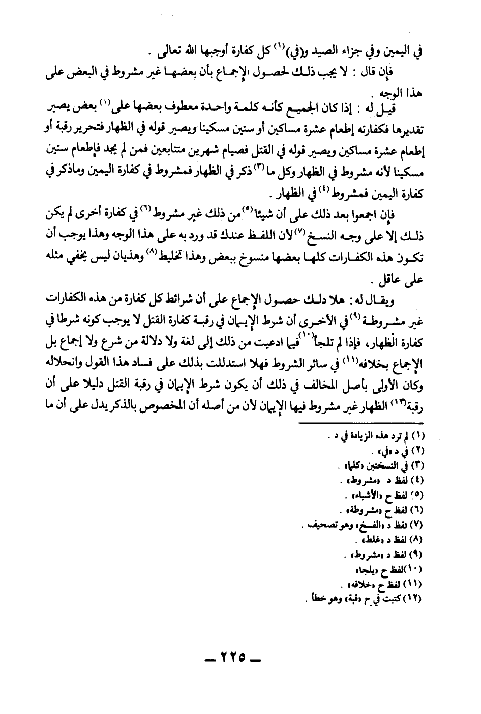فَإِنْ اجْمَعُوا بَعْدَ ذَلِكَ عَلَى أَنَّ شَيْئًا مِنْ ذَلِكَ غَيْرُ مَشْرُوطٍ فِي كَفَّارَةٍ أُخْرَى لَمْ يَكُنْ ذَلِكَ إلَّا عَلَى وَجْهِ النَّسْخِ لِأَنَّ اللَّفْظَ عِنْدَك قَدْ وَرَدَ بِهِ عَلَى هَذَا الْوَجْهِ وَهَذَا يُوجِبُ أَنْ تَكُونَ هَذِهِ الْكَفَّارَاتِ كُلَّهَا بَعْضُهَا مَنْسُوخٌ بِبَعْضٍ وَهَذَا تَخْلِيطٌ وَهَذَيَانٌ لَيْسَ يَخْفَى مِثْلُهُ عَلَى عَاقِلٍ. وَيُقَالُ لَهُ: هَلَّا دَلَّك حُصُولُ الْإِجْمَاعِ عَلَى أَنَّ شَرَائِطَ كُلِّ كَفَّارَةٍ مِنْ هَذِهِ الْكَفَّارَاتِ غَيْرُ مَشْرُوطَةٍ فِي الْأُخْرَى أَنَّ شَرْطَ الْإِيمَانِ فِي رَقَبَةِ كَفَّارَةِ الْقَتْلِ لَا يُوجِبُ كَوْنَهُ شَرْطًا فِي كَفَّارَةِ الظِّهَارِ، فَإِذَا لَمْ تَلْجَأْ فِيمَا ادَّعَيْتَ مِنْ ذَلِكَ إلَى لُغَةٍ وَلَا دَلَالَةٍ مِنْ شَرْعٍ وَلَا إجْمَاعٍ بَلْ الْإِجْمَاعُ بِخِلَافِهِ فِي سَائِرِ الشُّرُوطِ فَهَلَّا اسْتَدْلَلْتَ بِذَلِكَ عَلَى فَسَادِ هَذَا الْقَوْلِ وَانْحِلَالِهِ وَكَانَ الْأَوْلَى بِأَصْلِ الْمُخَالِفِ فِي ذَلِكَ أَنْ يَكُونَ شَرْطُ الْإِيمَانِ فِي رَقَبَةِ الْقَتْلِ دَلِيلًا عَلَى أَنَّ رَقَبَةَ الظِّهَارِ غَيْرُ مَشْرُوطٍ فِيهَا الْإِيمَانُ لِأَنَّ مِنْ أَصْلِهِ أَنَّ الْمَخْصُوصَ بِالذِّكْرِ يَدُلُّ عَلَى أَنَّ مَا