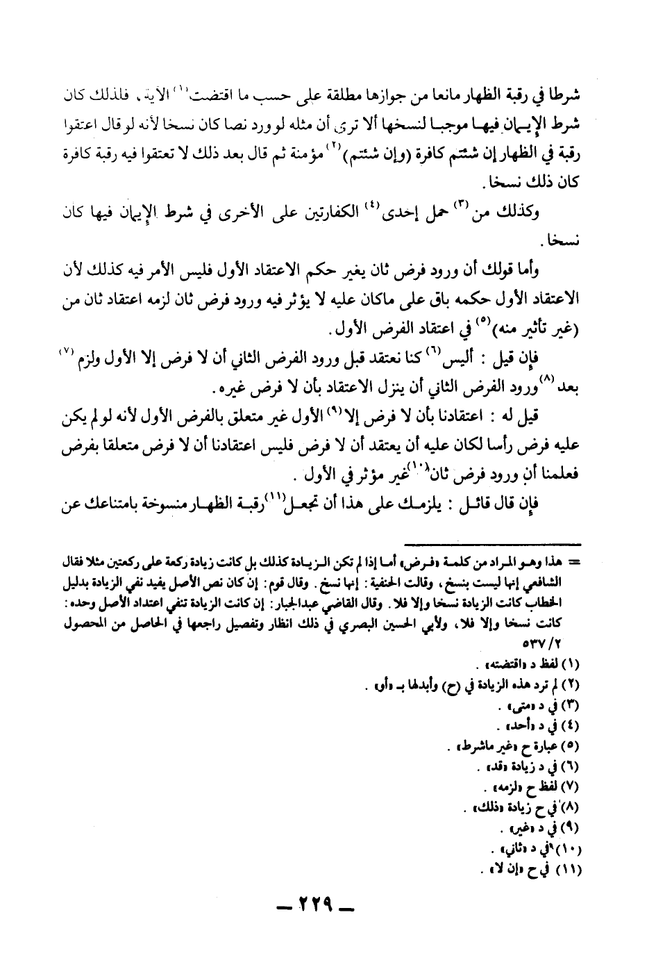 شَرْطًا فِي رَقَبَةِ الظِّهَارِ مَانِعًا مِنْ جَوَازِهَا مُطْلَقَةً عَلَى حَسَبِ مَا اقْتَضَتْ الْآيَةُ، فَلِذَلِكَ كَانَ شَرْطُ الْإِيمَانِ فِيهَا مُوجِبًا لِنَسْخِهَا أَلَا تَرَى أَنَّ مِثْلَهُ لَوْ وَرَدَ نَصًّا كَانَ نَسْخًا لِأَنَّهُ لَوْ قَالَ اعْتِقُوا رَقَبَةً فِي الظِّهَارِ إنْ شِئْتُمْ كَافِرَةً (وَإِنْ شِئْتُمْ) مُؤْمِنَةً ثُمَّ قَالَ بَعْدَ ذَلِكَ لَا تَعْتِقُوا فِيهِ رَقَبَةً كَافِرَةً كَانَ ذَلِكَ نَسْخًا. وَكَذَلِكَ مَنْ حَمَلَ إحْدَى الْكَفَّارَتَيْنِ عَلَى الْأُخْرَى فِي شَرْطِ الْإِيمَانِ فِيهَا كَانَ نَسْخًا. وَأَمَّا قَوْلُك إنَّ وُرُودَ فَرْضٍ ثَانٍ يُغَيِّرُ حُكْمَ الِاعْتِقَادِ الْأَوَّلِ فَلَيْسَ الْأَمْرُ فِيهِ كَذَلِكَ لِأَنَّ الِاعْتِقَادَ الْأَوَّلَ حُكْمُهُ بَاقٍ عَلَى مَا كَانَ عَلَيْهِ لَا يُؤَثِّرُ فِيهِ وُرُودُ فَرْضٍ ثَانٍ لَزِمَهُ اعْتِقَادٌ ثَانٍ مِنْ (غَيْرِ تَأْثِيرٍ مِنْهُ) فِي اعْتِقَادِ الْفَرْضِ الْأَوَّلِ. فَإِنْ قِيلَ: أَلَيْسَ كُنَّا نَعْتَقِدُ قَبْلَ وُرُودِ الْفَرْضِ الثَّانِي أَنْ لَا فَرْضَ إلَّا الْأَوَّلُ وَلَزِمَ بَعْدَ وُرُودِ الْفَرْضِ الثَّانِي أَنْ يُنَزَّلَ الِاعْتِقَادُ بِأَنْ لَا فَرْضَ غَيْرُهُ.