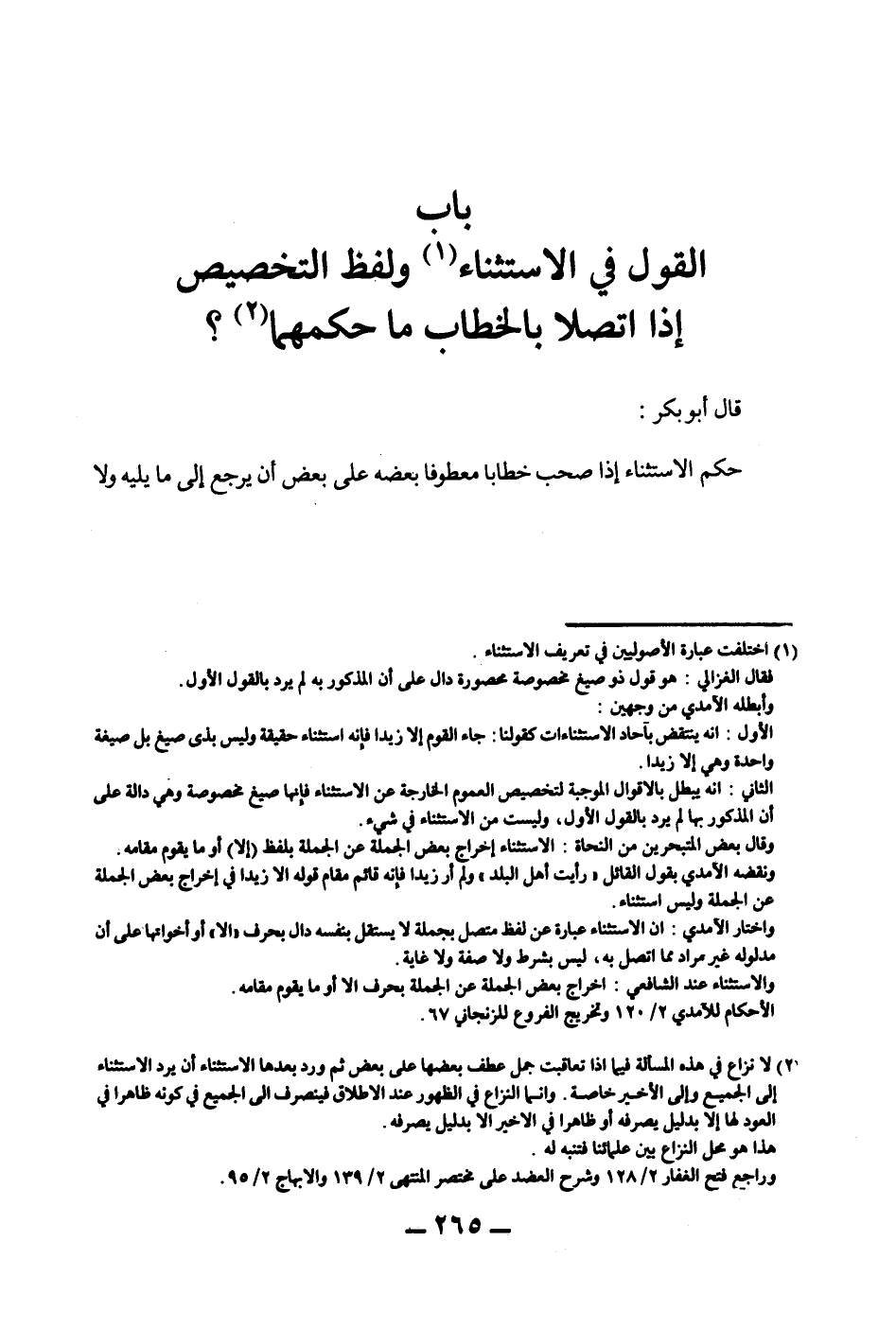 [بَاب الْقَوْلُ فِي الِاسْتِثْنَاءِ وَلَفْظِ التَّخْصِيصِ إذَا اتَّصَلَا بِالْخِطَابِ مَا حُكْمُهُمَا]