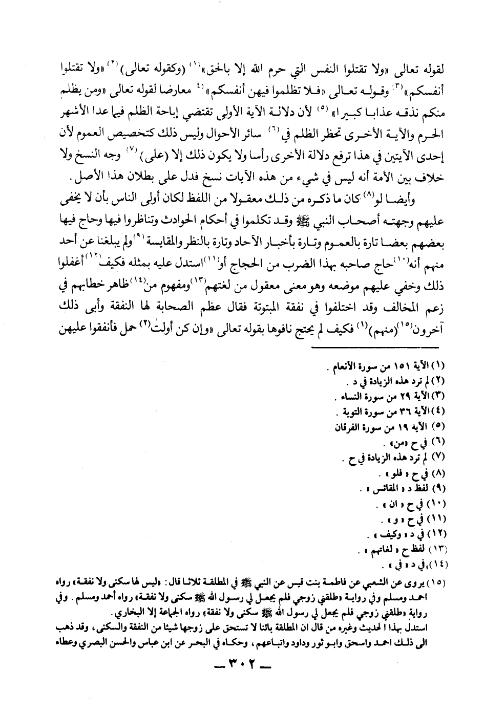 لِقَوْلِهِ تَعَالَى {وَلَا تَقْتُلُوا النَّفْسَ الَّتِي حَرَّمَ اللَّهُ إلَّا بِالْحَقِّ} [الأنعام: 151] (وَكَقَوْلِهِ تَعَالَى) {وَلَا تَقْتُلُوا أَنْفُسَكُمْ} [النساء: 29] وقَوْله تَعَالَى {فَلَا تَظْلِمُوا فِيهِنَّ أَنْفُسَكُمْ} [التوبة: 36] مُعَارِضًا لِقَوْلِهِ تَعَالَى {وَمَنْ يَظْلِمْ مِنْكُمْ نُذِقْهُ عَذَابًا كَبِيرًا} [الفرقان: 19] لِأَنَّ دَلَالَةَ الْآيَةِ الْأُولَى تَقْتَضِي إبَاحَةَ الظُّلْمِ فِيمَا عَدَا الْأَشْهُرَ الْحُرُمَ، وَالْآيَةُ الْأُخْرَى تَحْظُرُ الظُّلْمَ فِي سَائِرِ الْأَحْوَالِ وَلَيْسَ ذَلِكَ كَتَخْصِيصِ الْعُمُومِ لِأَنَّ إحْدَى الْآيَتَيْنِ فِي هَذَا تَرْفَعُ دَلَالَةَ الْأُخْرَى رَأْسًا وَلَا يَكُونُ ذَلِكَ إلَّا (عَلَى) وَجْهِ النَّسْخِ وَلَا خِلَافَ بَيْنَ الْأُمَّةِ أَنَّهُ لَيْسَ فِي شَيْءٍ مِنْ هَذِهِ الْآيَاتِ نَسْخٌ فَدَلَّ عَلَى بُطْلَانِ هَذَا الْأَصْلِ.